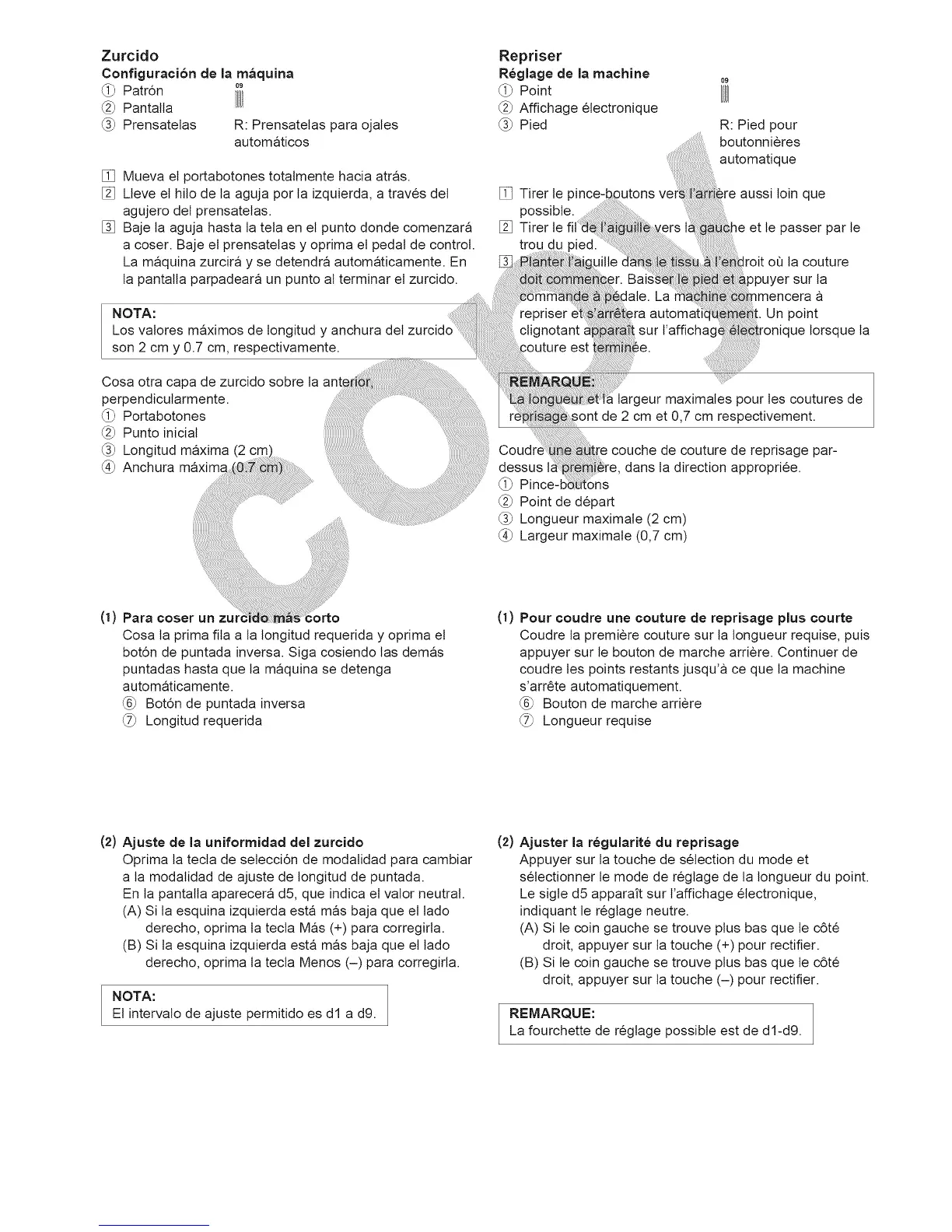 (2) Ajuster la regularit6 du reprisage