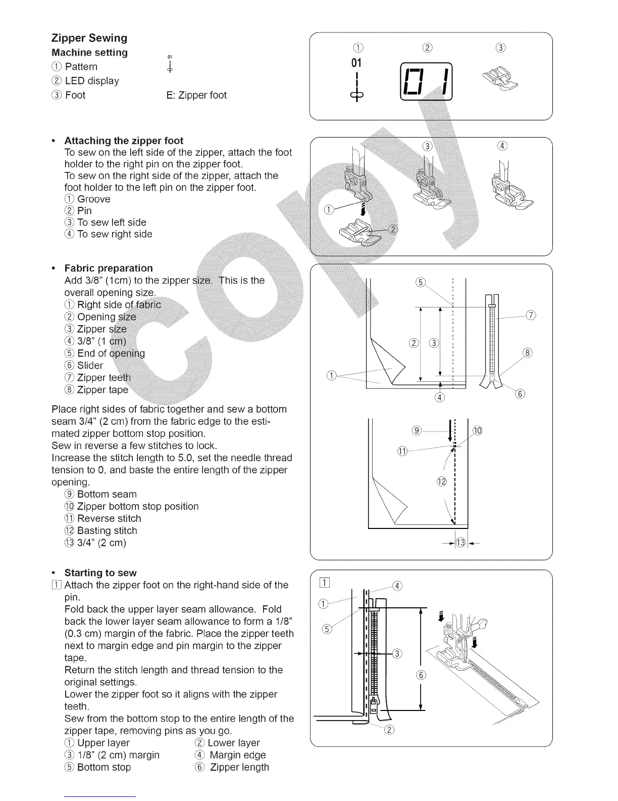 (0.3 cm) margin of the fabric. Place the zipper teeth