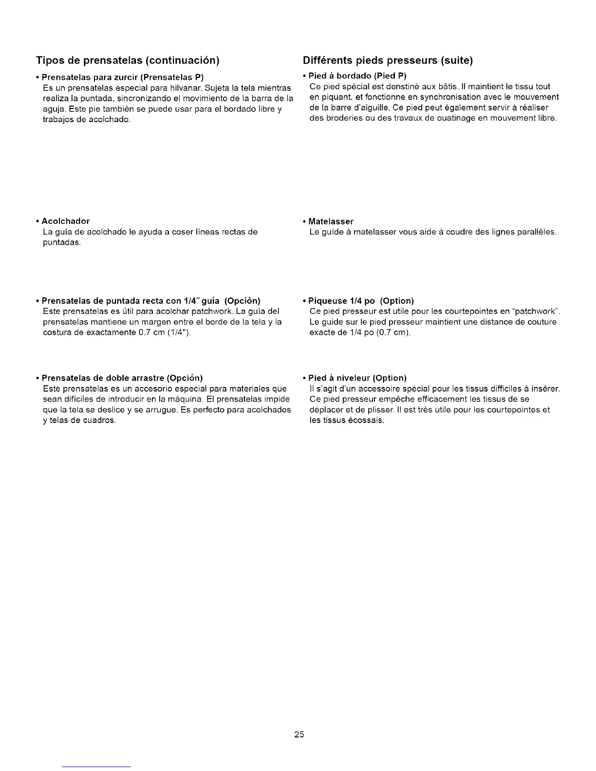 • Prensatelas de puntada recta con l/4"guia (Opci6n)