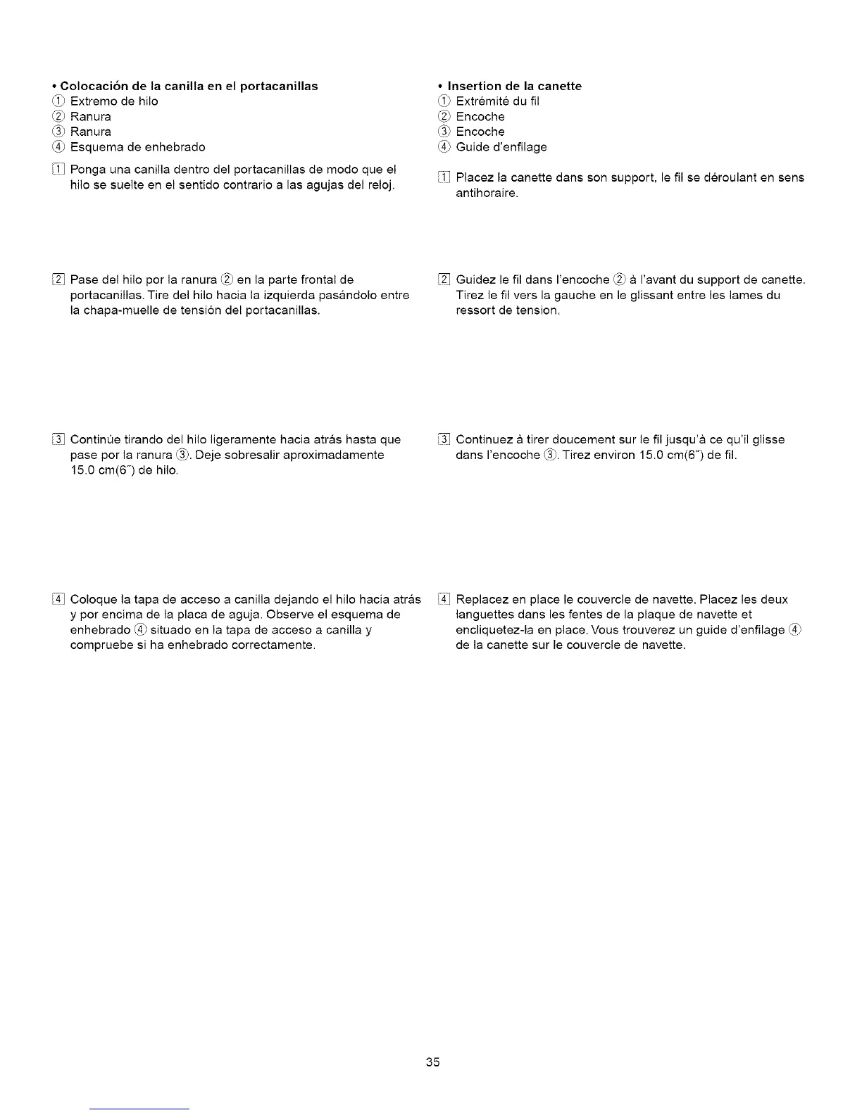 portacanillas. Tire del hilo hacia la izquierda pas&ndolo entre