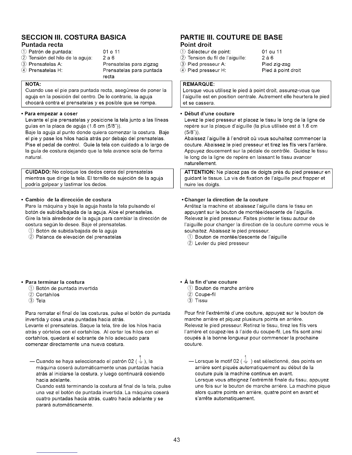 Pour finir rextremit6 d'une couture, appuyez sur le bouton de