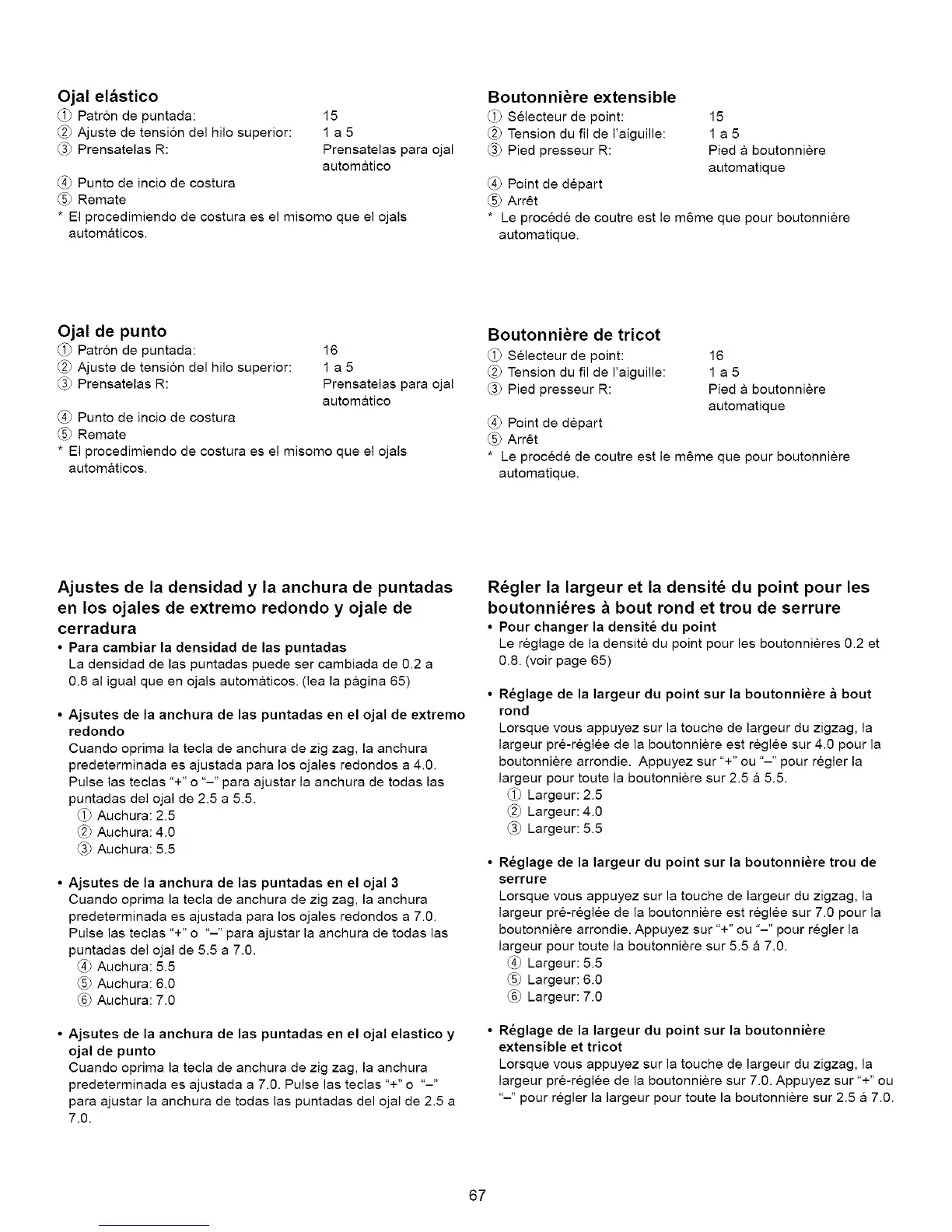 • Ajsutes de la anchura de las puntadas en el ojal 3