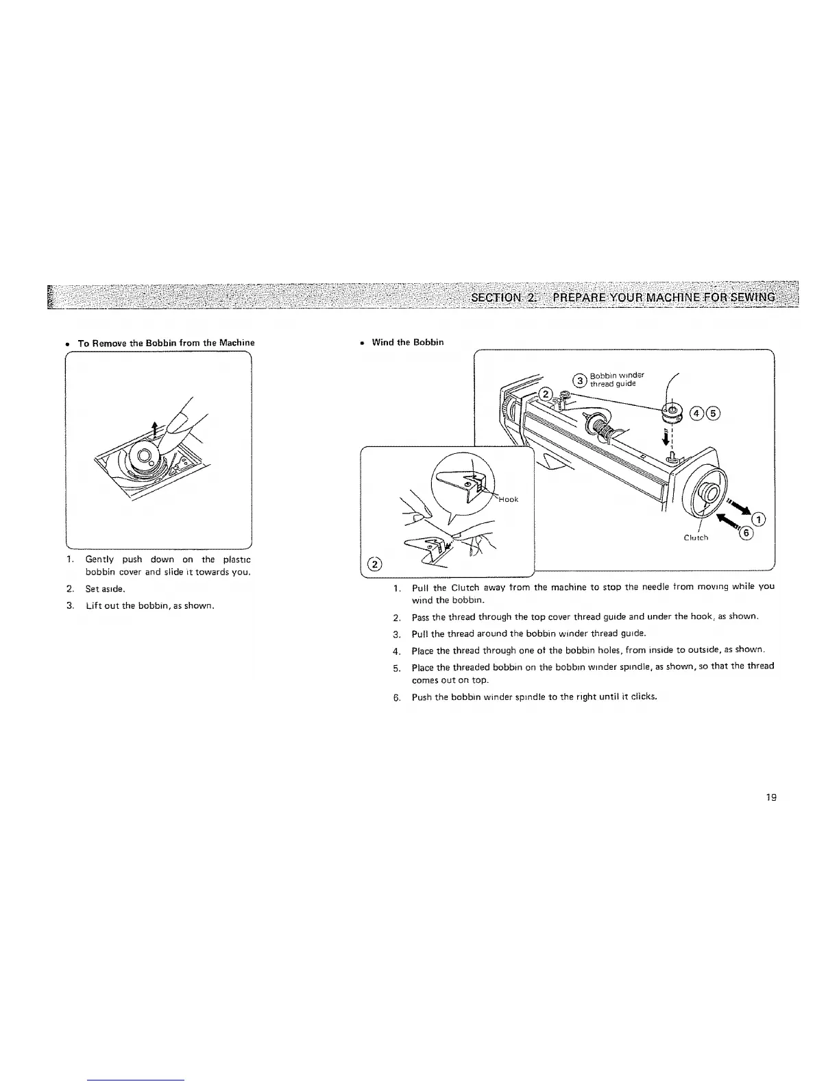 4. Pface the thread through one of the bobbin holes, from inside to outside, as shown.