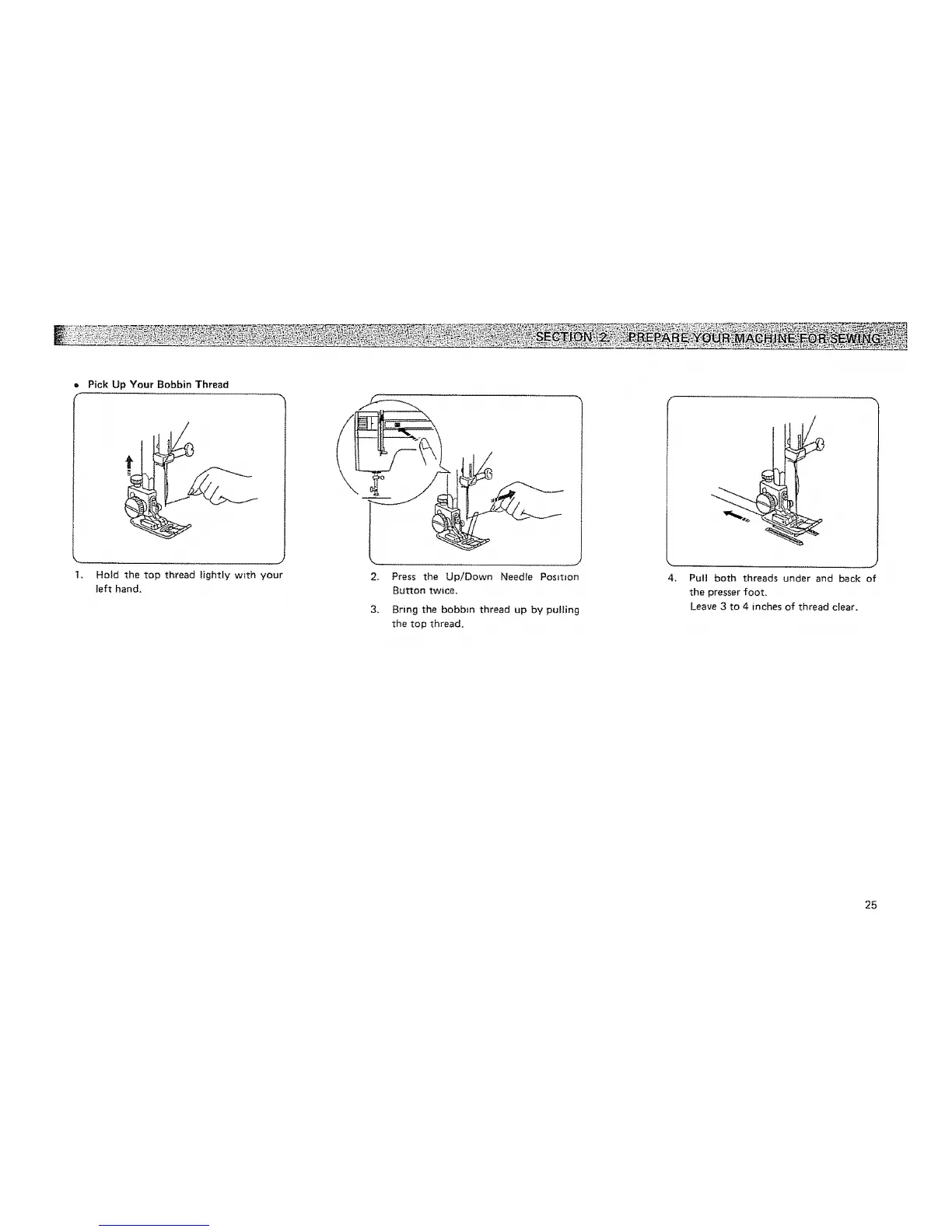 Leave 3 to 4 inches of thread clear.