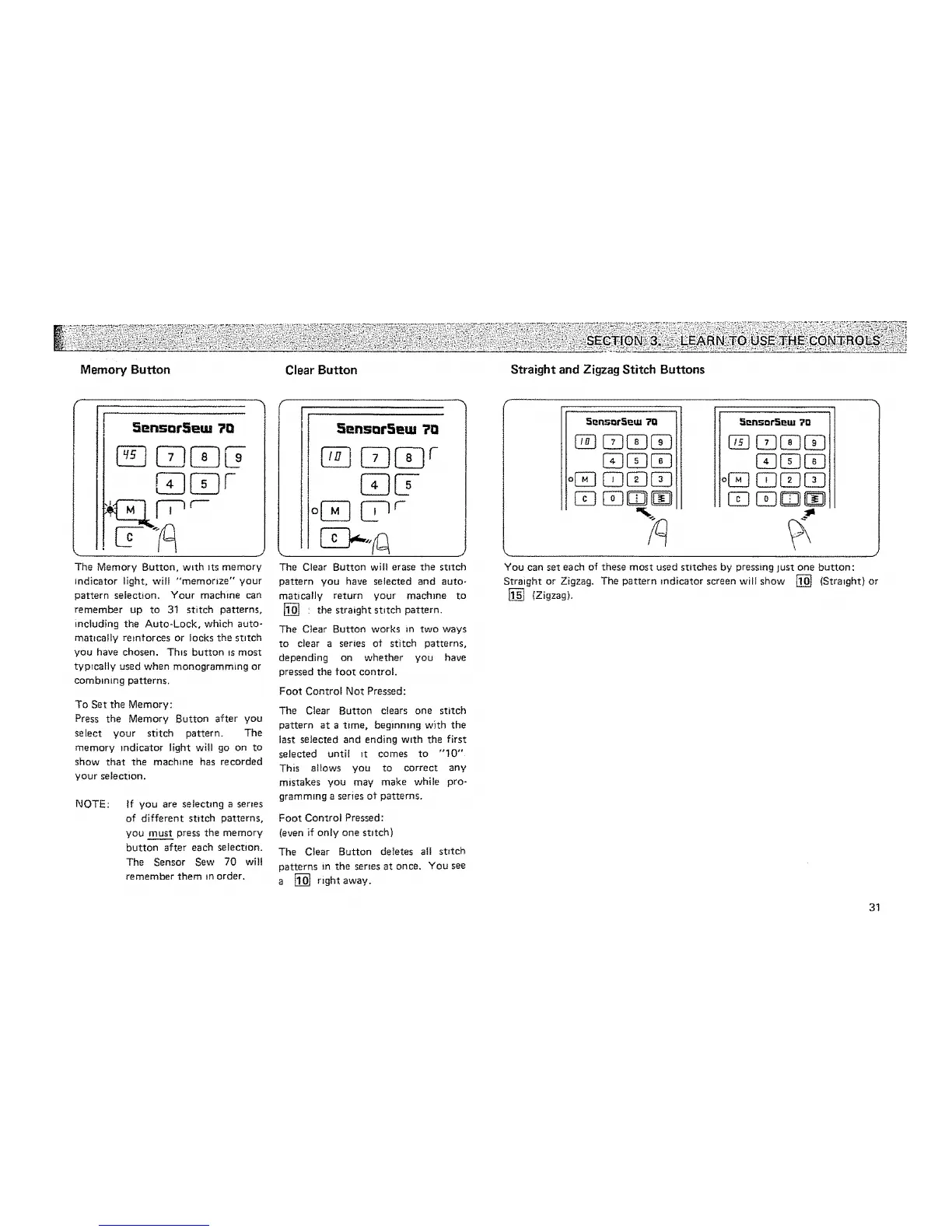 Memory Button Clear Button Straight and Zigzag Stitch Buttons