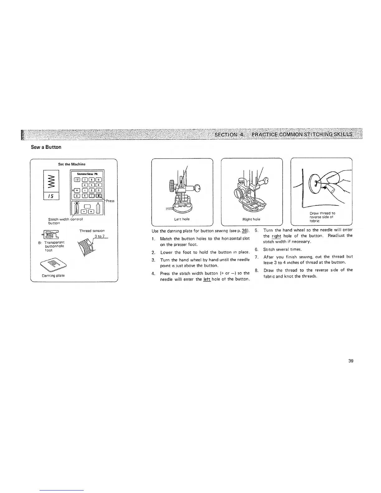 Use the darning plate for button sewing (see p, 366).