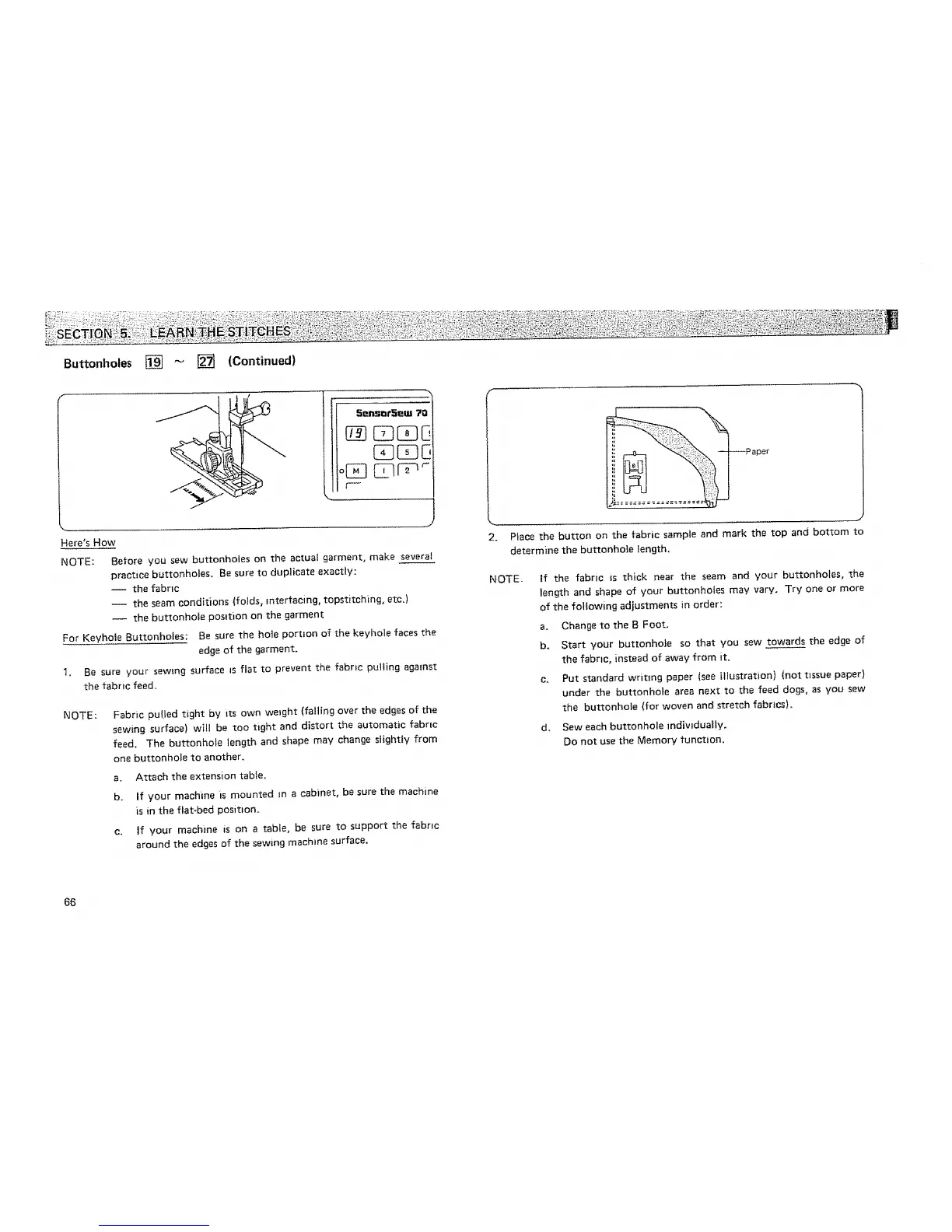 NOTE: Before you sew buttonholes on the actual garment, make several