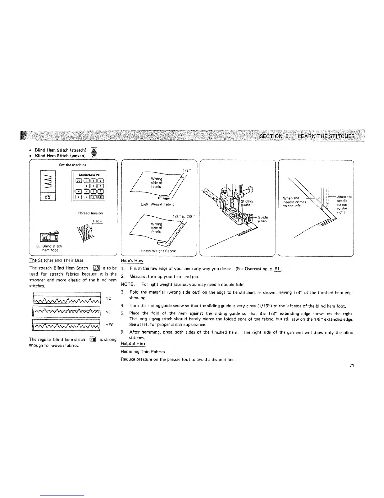 6, After hemming, press both sides of the fimshed hem. The right s_de of the garment will show only the bfind