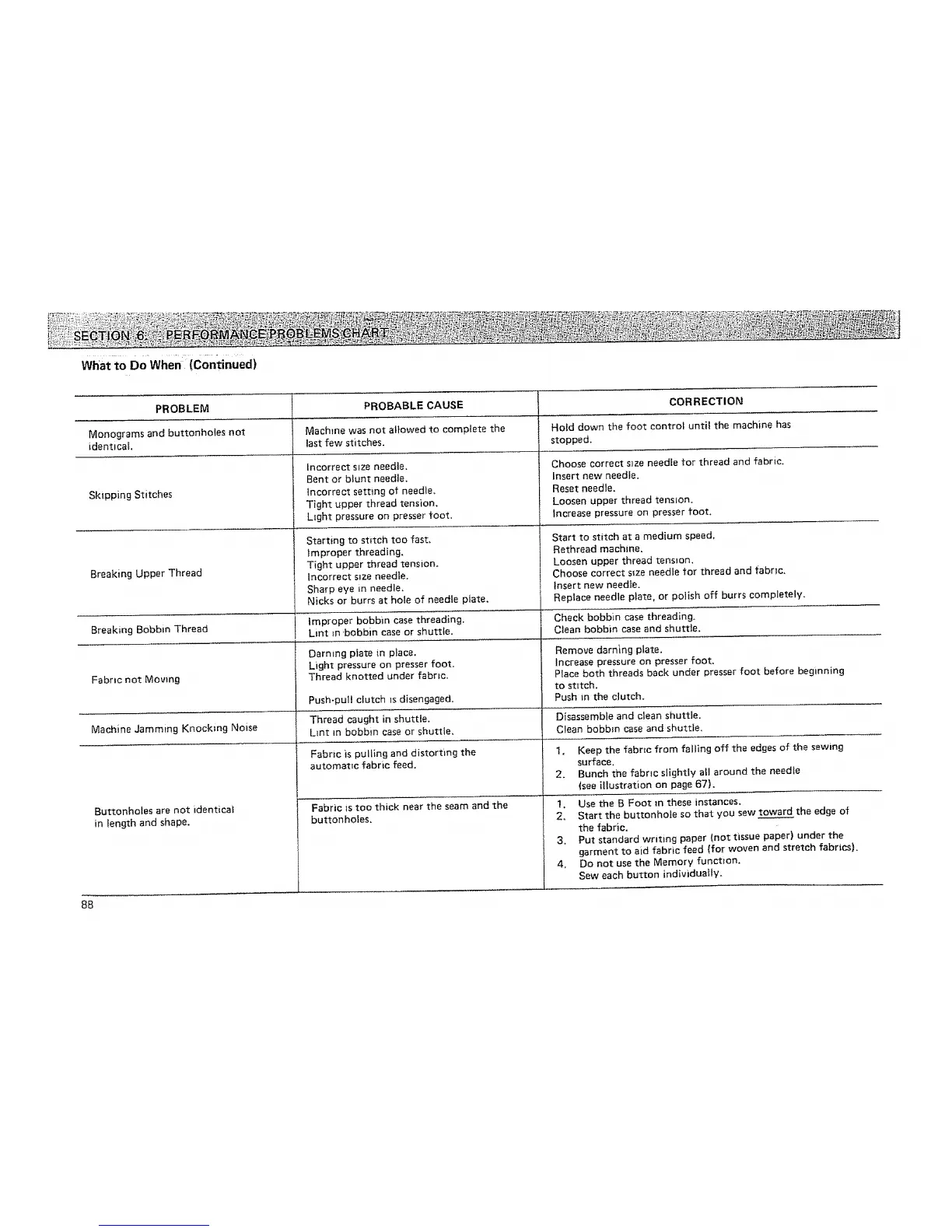 Monograms and buttonholes not Machine was not allowed to complete the Hold down the foot control until the machine has