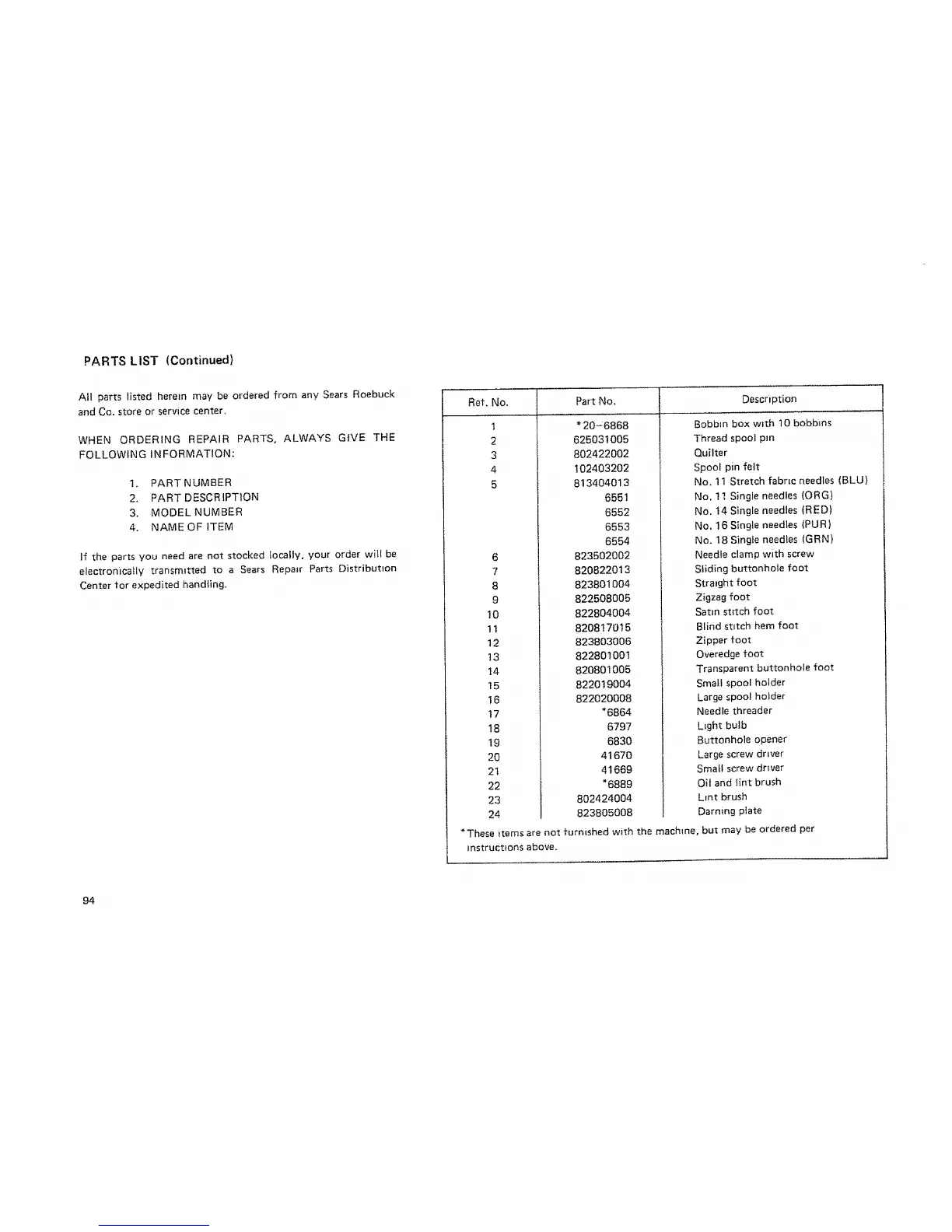 electronicafly transmitted to a Sears Repair Parts Distribution