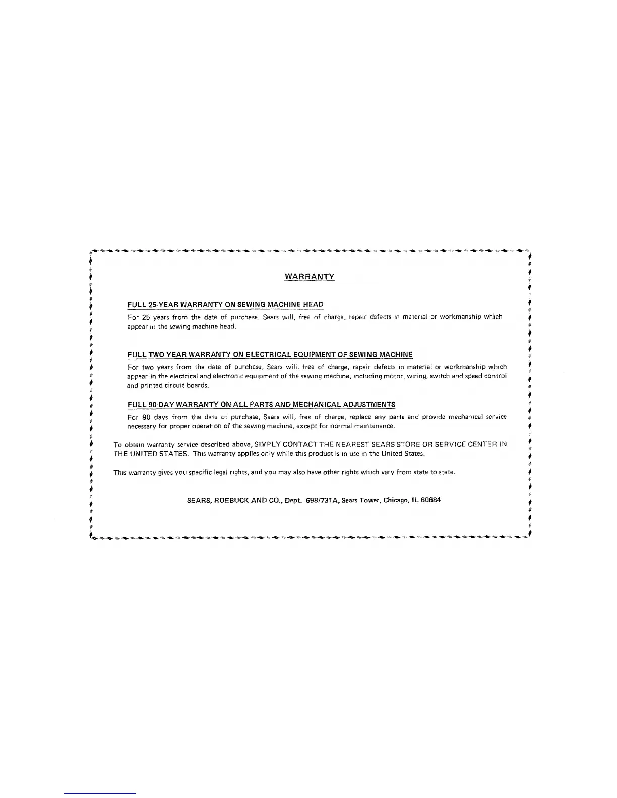 SEARS, ROEBUCK AND CO., Dept. 698/731A, SearsTower, Chicago, IL 60684
