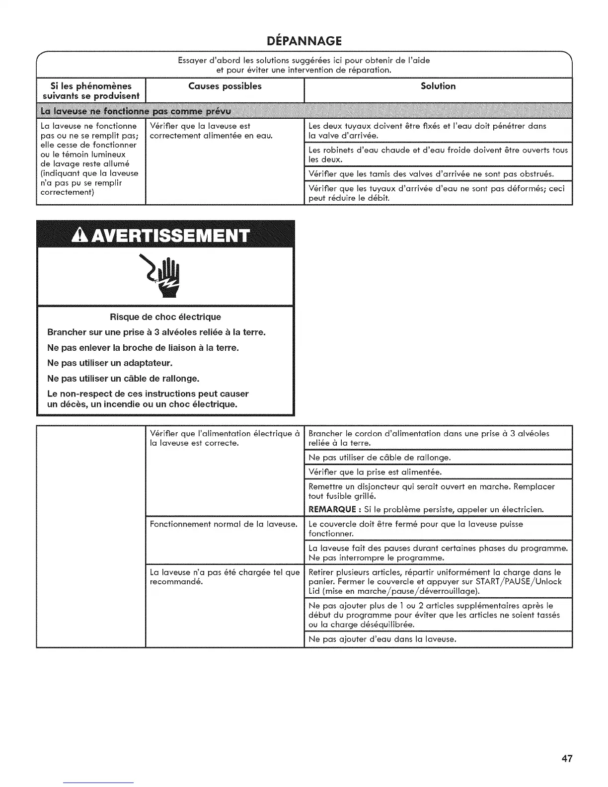 REMARQUE : Si le probl_me persiste, appeler un _lectricien.