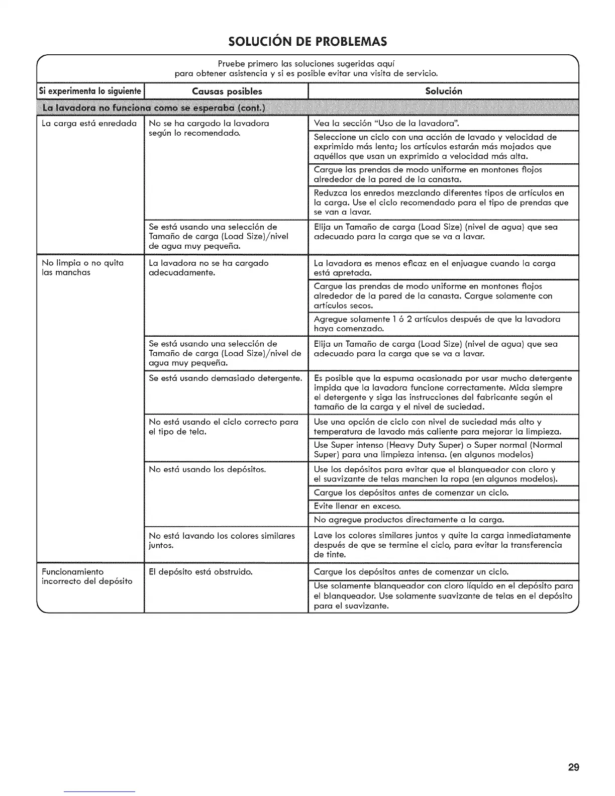 No se ha cargado la lavadora Vea la secci6n "Uso de la lavadora".