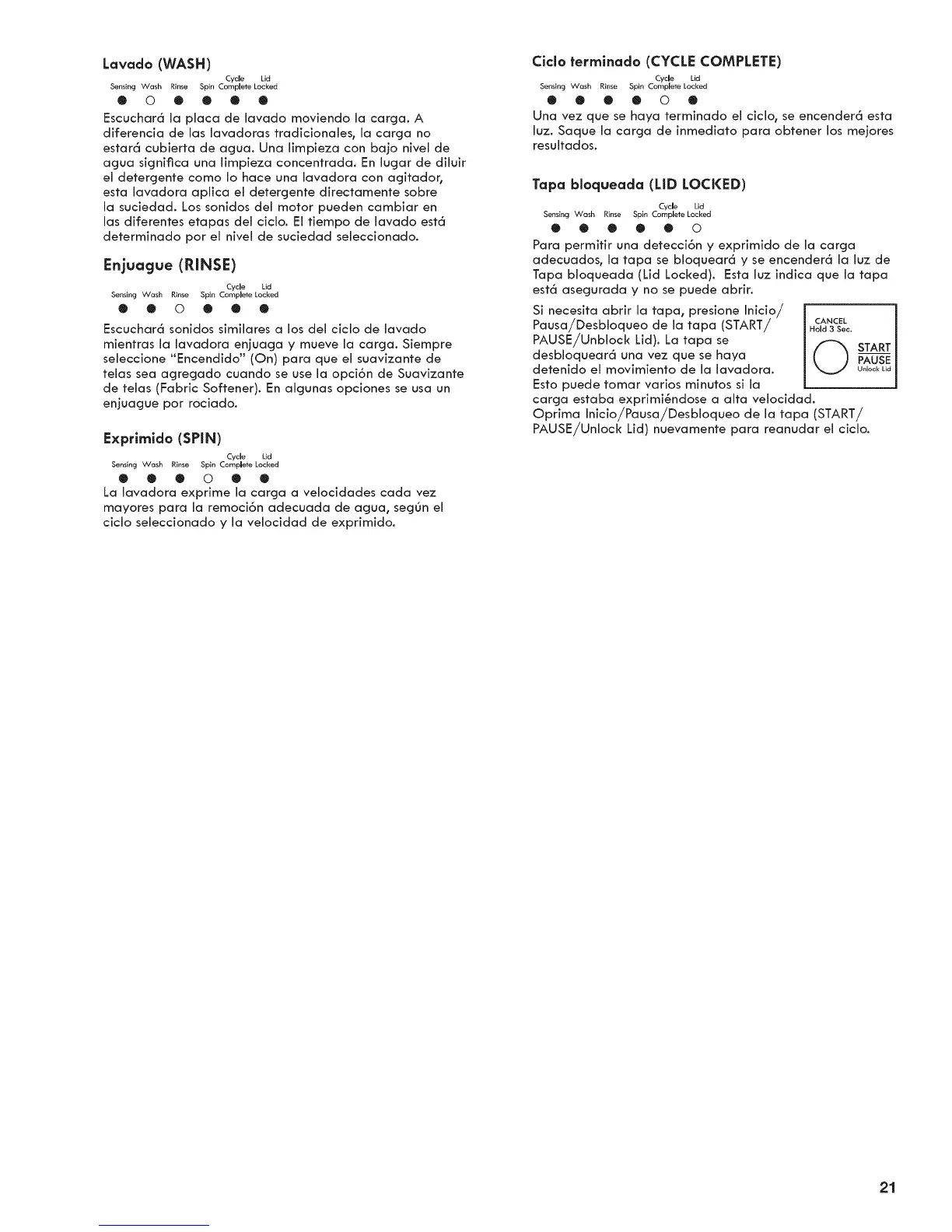 PAUSE/Unlock Lid) nuevamente para reanudar el ¢iclo.
