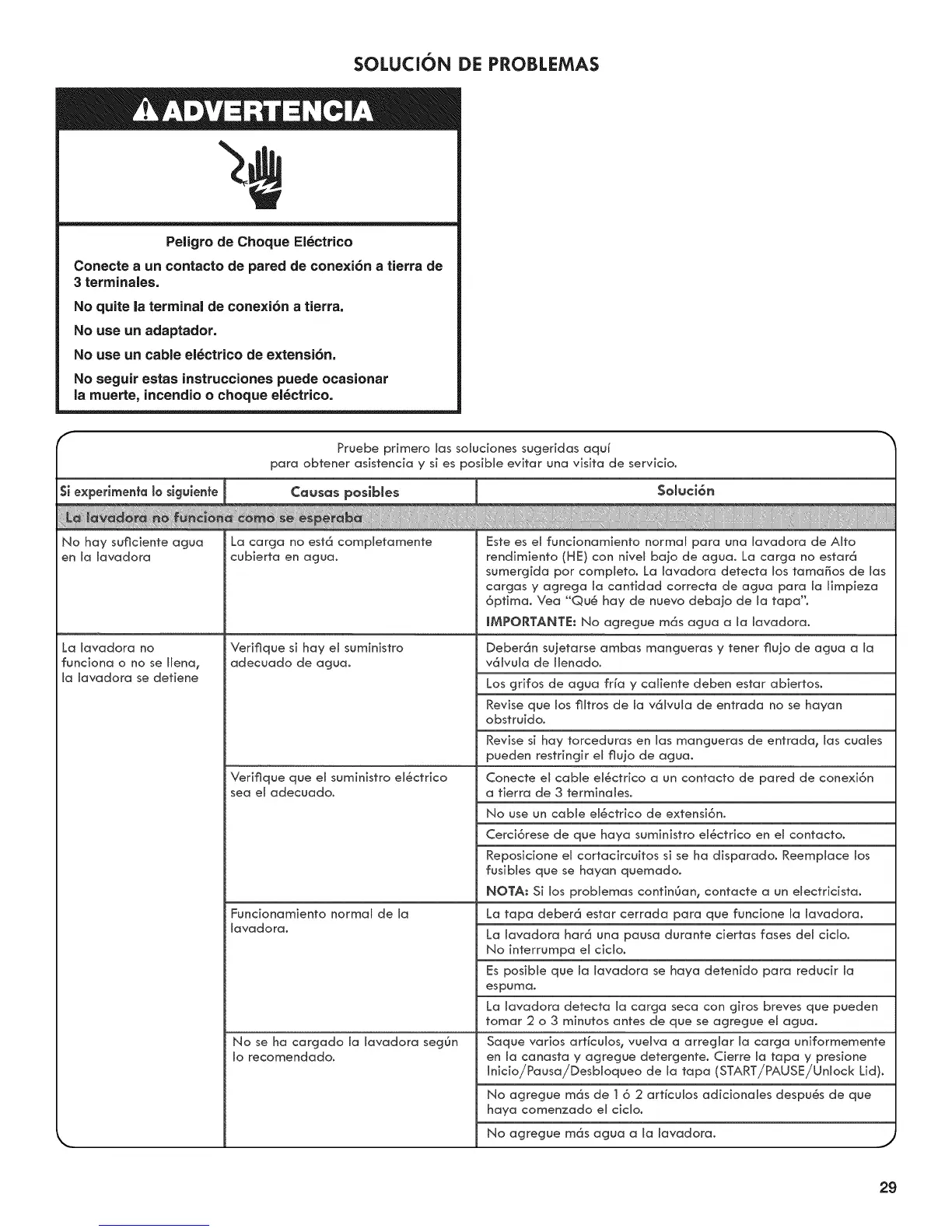 La carga no estd compRetamente Este es eRfuncionamiento normaR para una lavadora de Alto