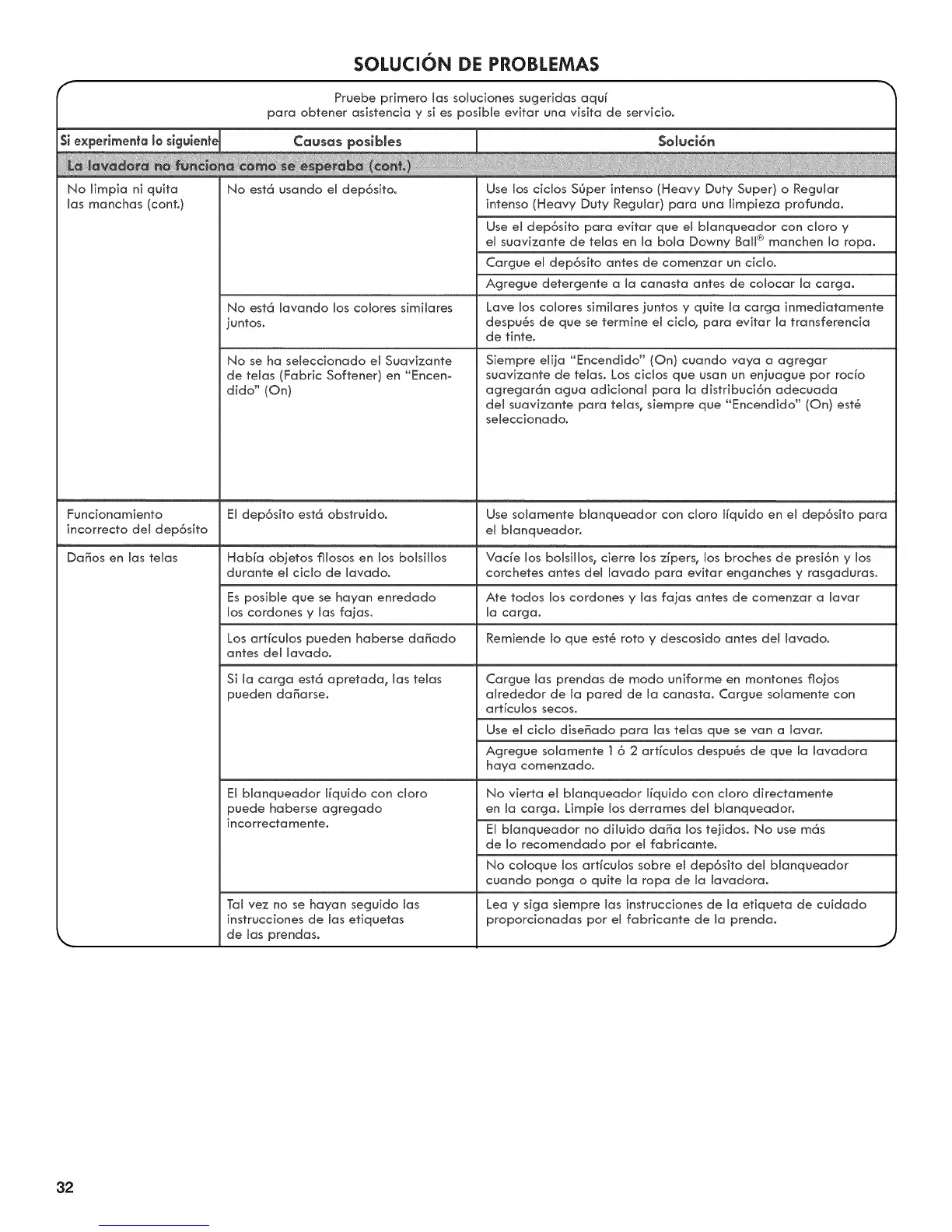 No coloque los arffculos sobre el dep6s]to del blanqueador