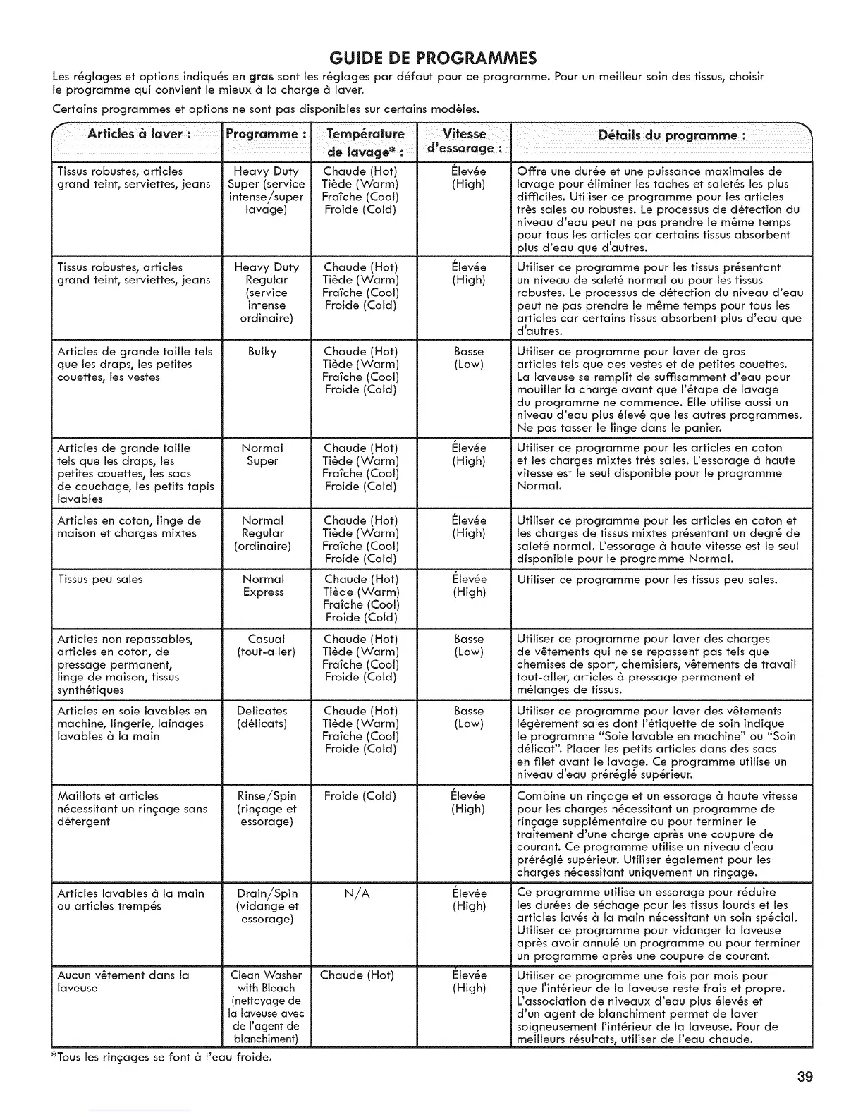 le programme quJ convient le mieux 6 la charge 6 laver.