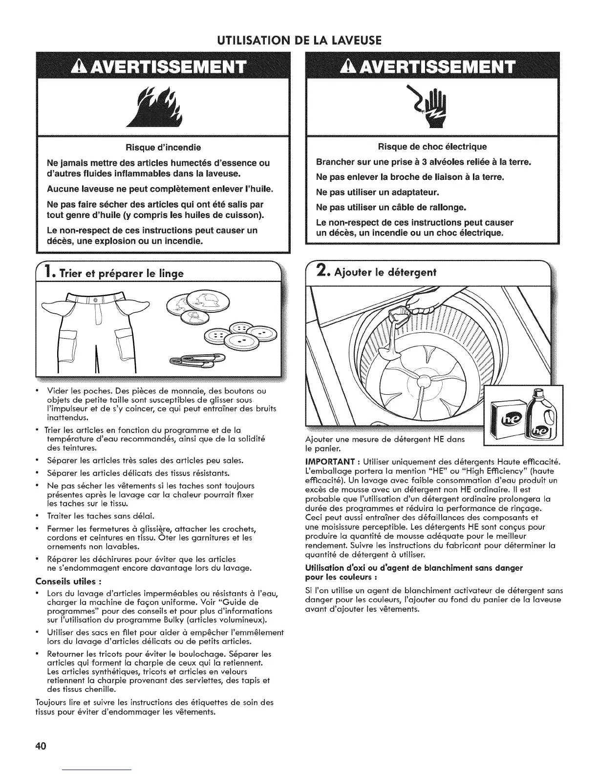iMPORTANT : Utiliser uniquement des d_tergents Haute emcacit_.