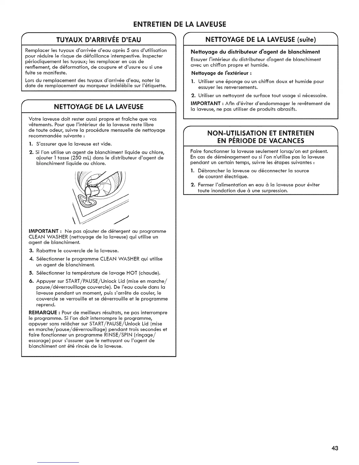 CLEAN WASHER (nettoyage de ia laveuse) qui utiiise un