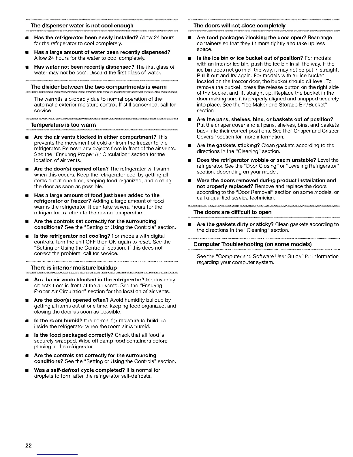 refrigerator. See the "Door Closing" or "Leveling Refrigerator"
