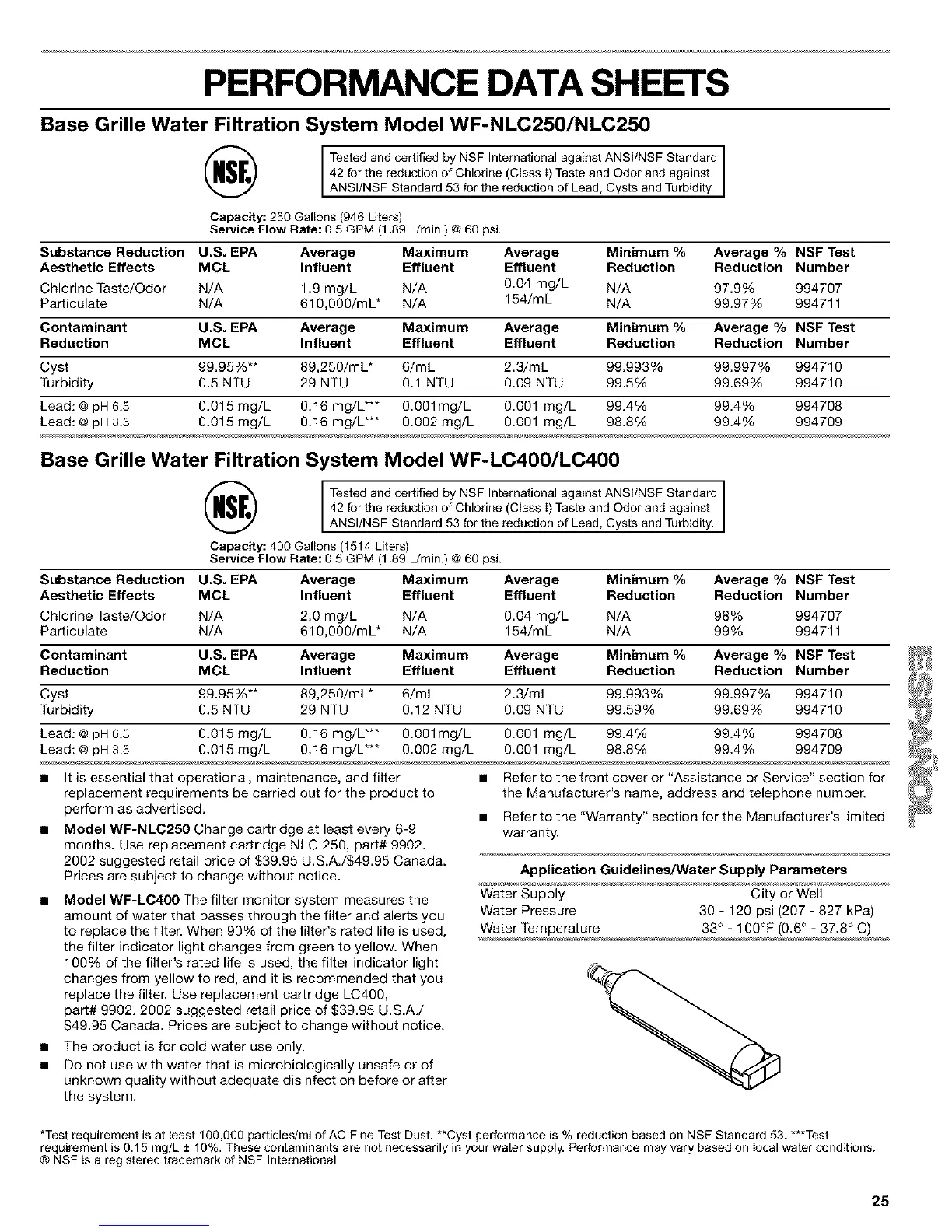 • Model WF-NLC250 Change cartridge at least every 6-9 warranty.