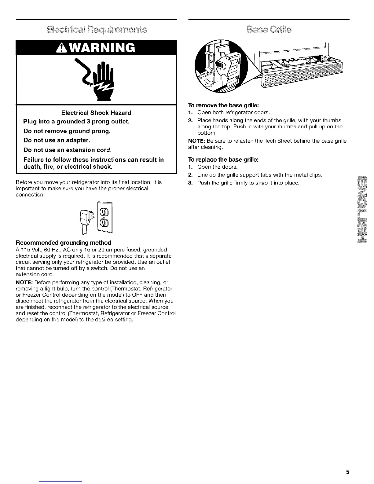 NOTE: Be sure to refasten the Tech Sheet behind the base grille