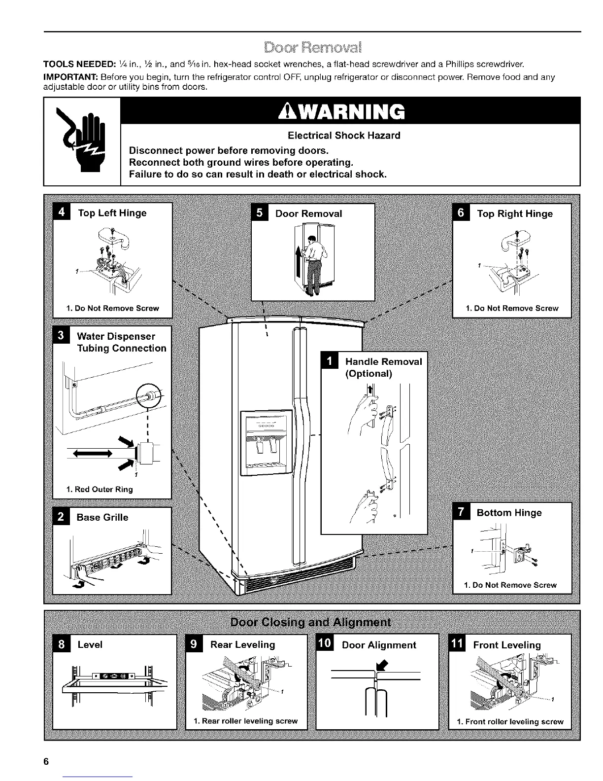 IMPORTANT: Before you begin, turn the refrigerator control OFF, unplug refrigerator or disconnect power. Remove food and any