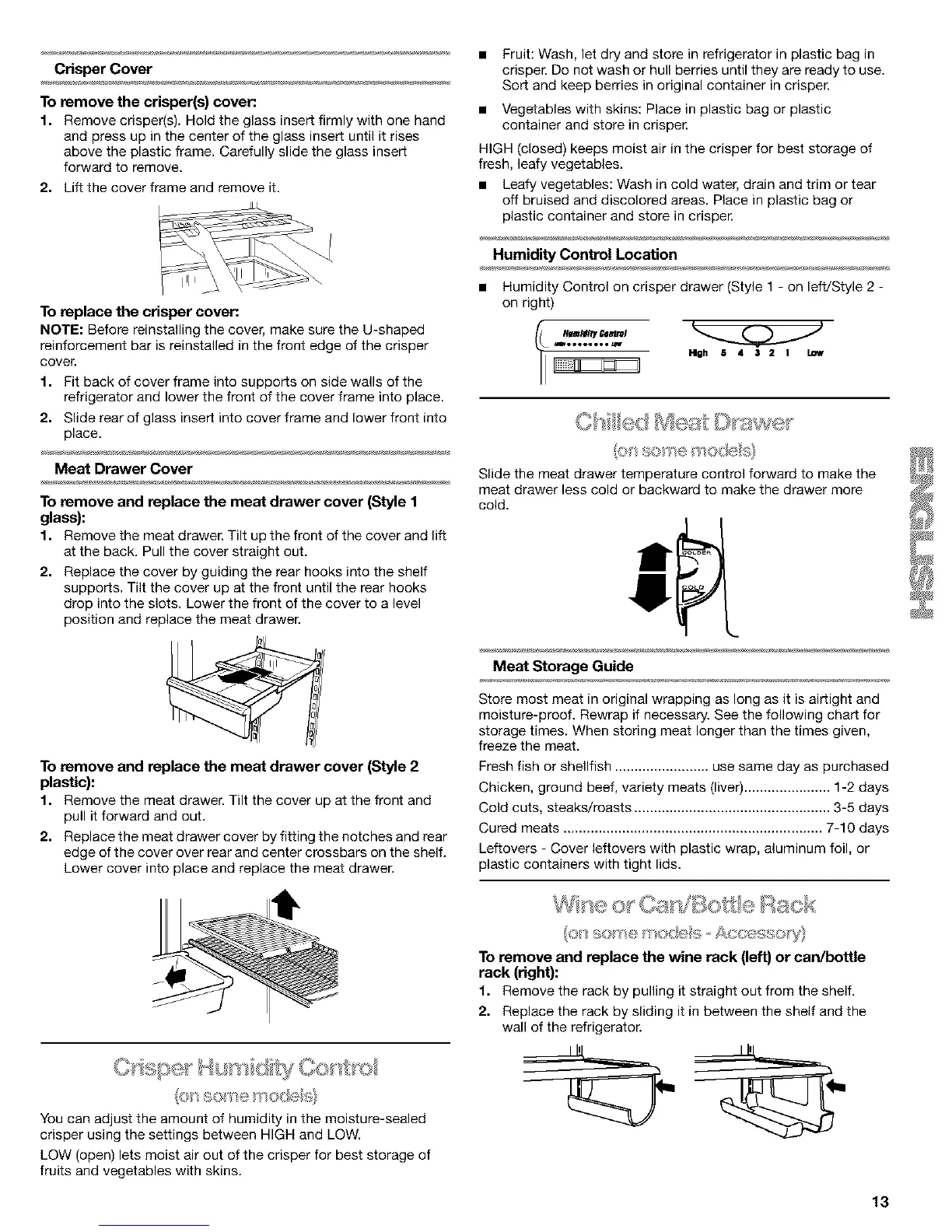 • Humidity Control on crisper drawer (Style 1 - on left/Style 2 -