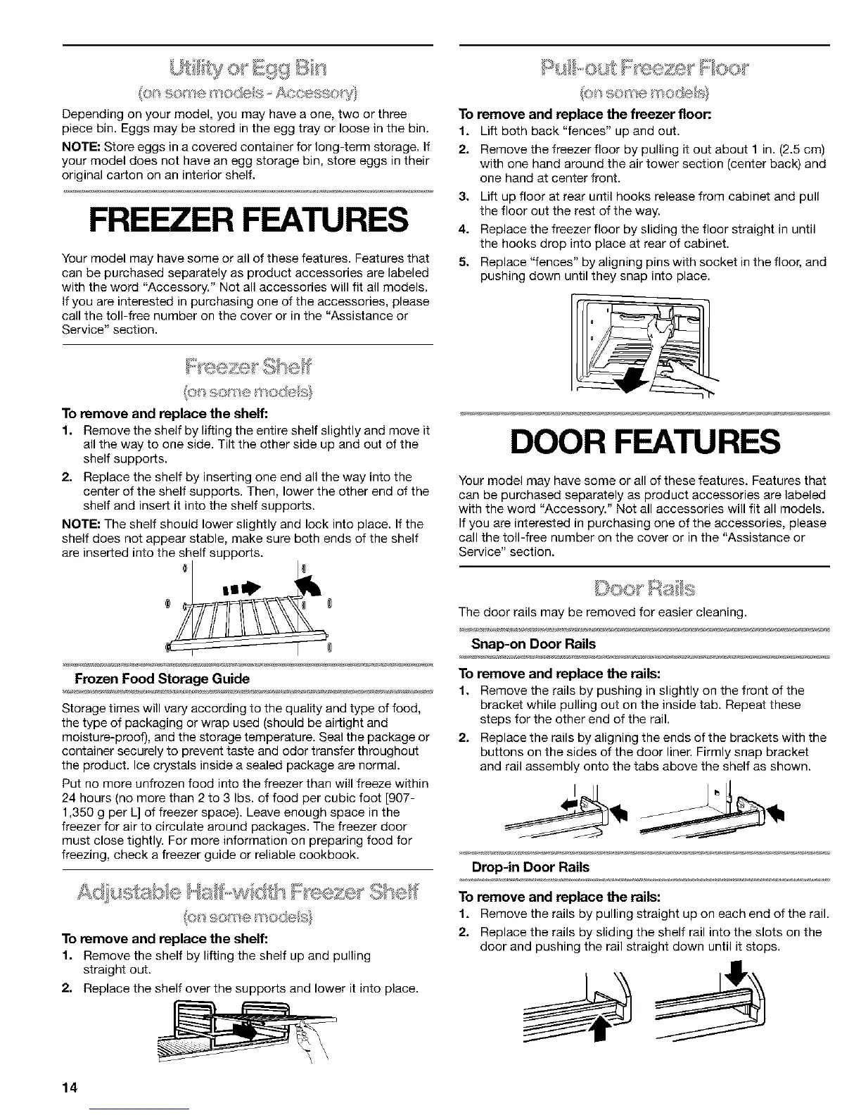 piece bin. Eggs may be stored in the egg tray or loose in the bin.