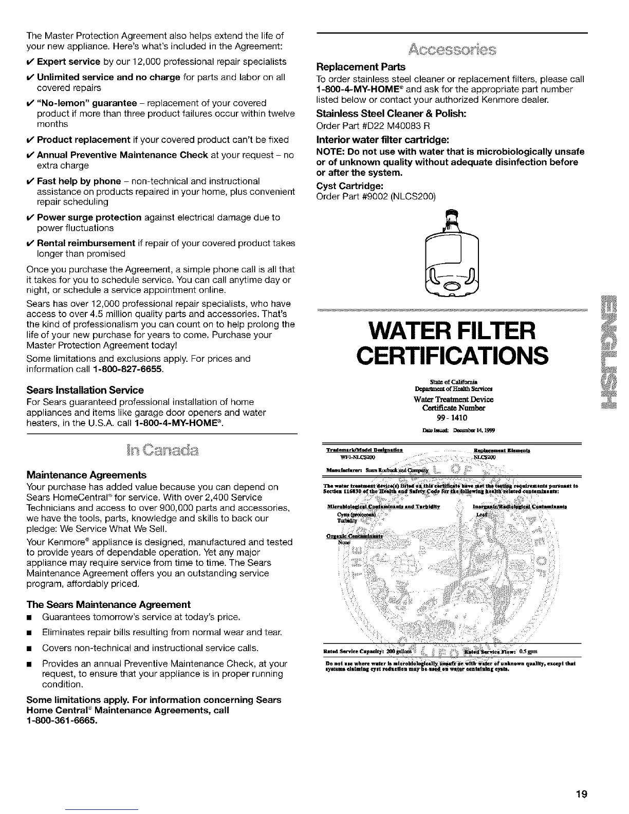 1-800-4-MY-HOME ®and ask for the appropriate part number