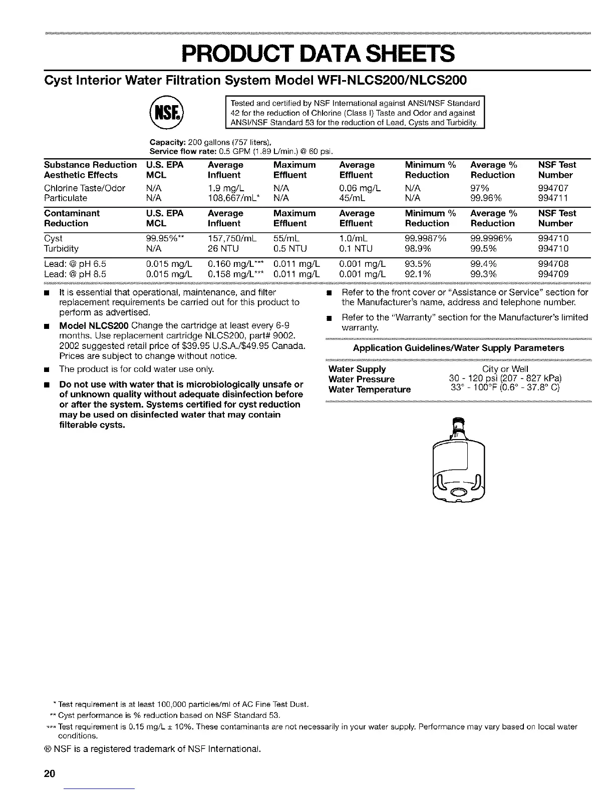 ANS/NSF Standard 53 or the reduct on of Lead, Cysts and Turb d ty.