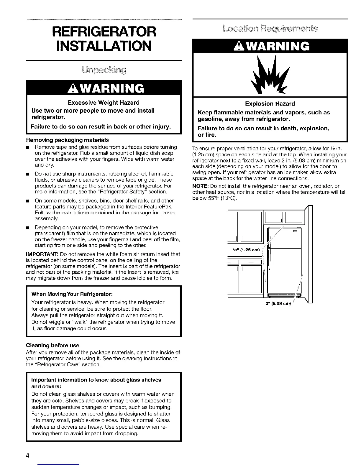 refrigerator next to a fixed wall, leave 2 in. (5.08 cm) minimum on