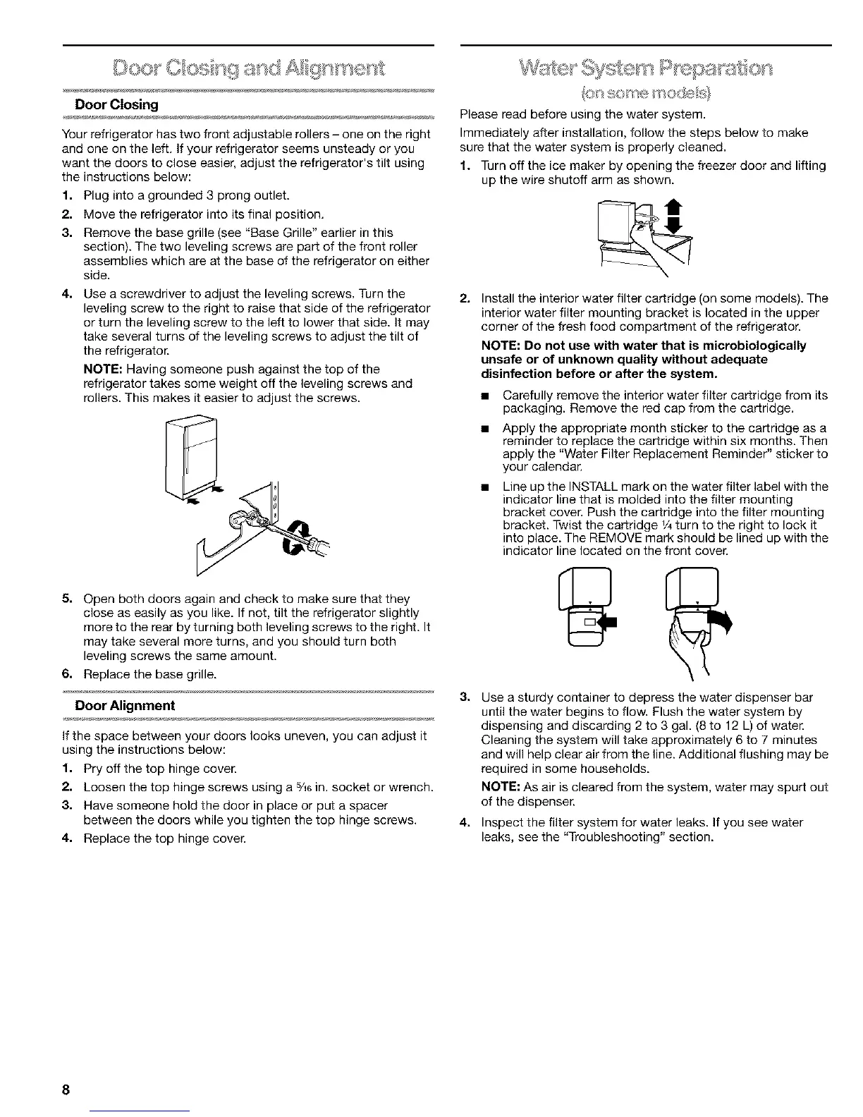 leveling screw to the right to raise that side of the refrigerator