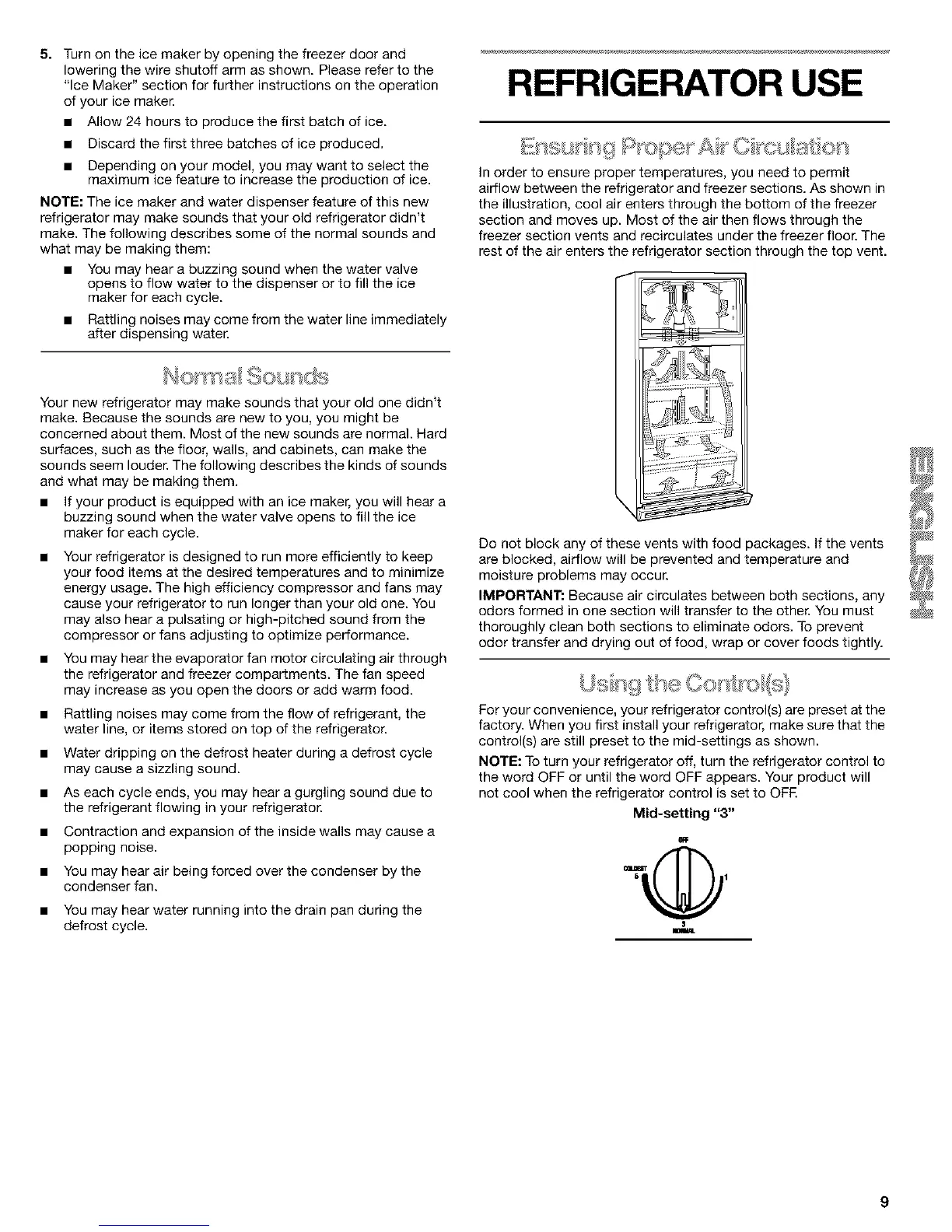 For your convenience, your refrigerator contro((s) are preset at the