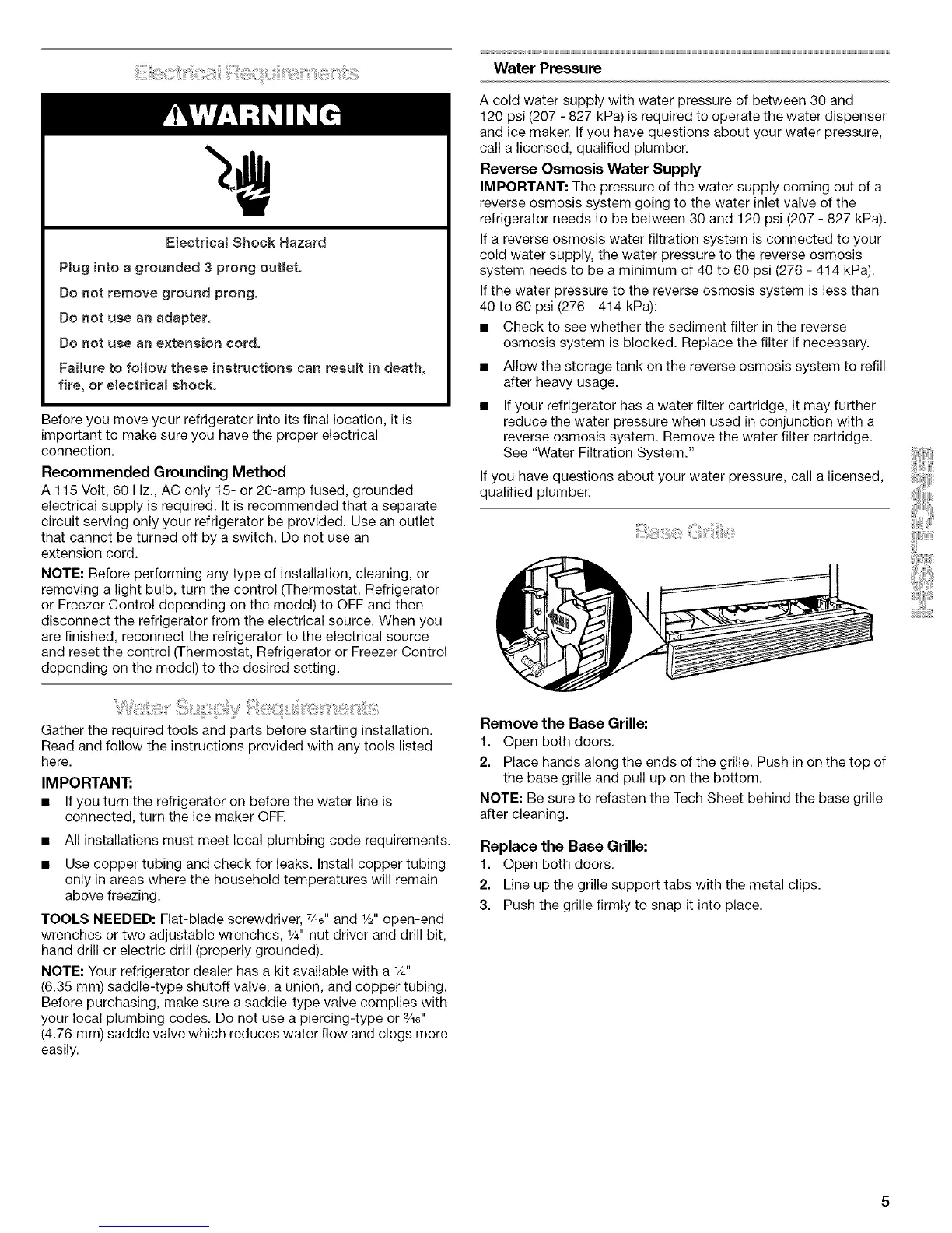 and ice maker. If you have questions about your water pressure,
