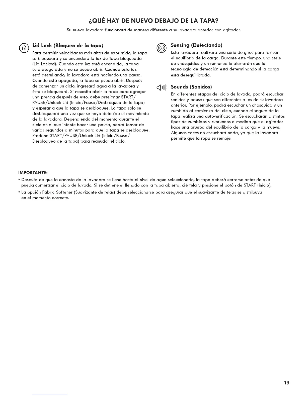 Su nueva lavadora funcionar6 de manera diferente a su lavadora anterior con agitador.