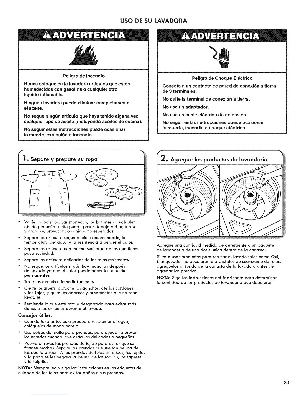 USO DE SU LAVADORA