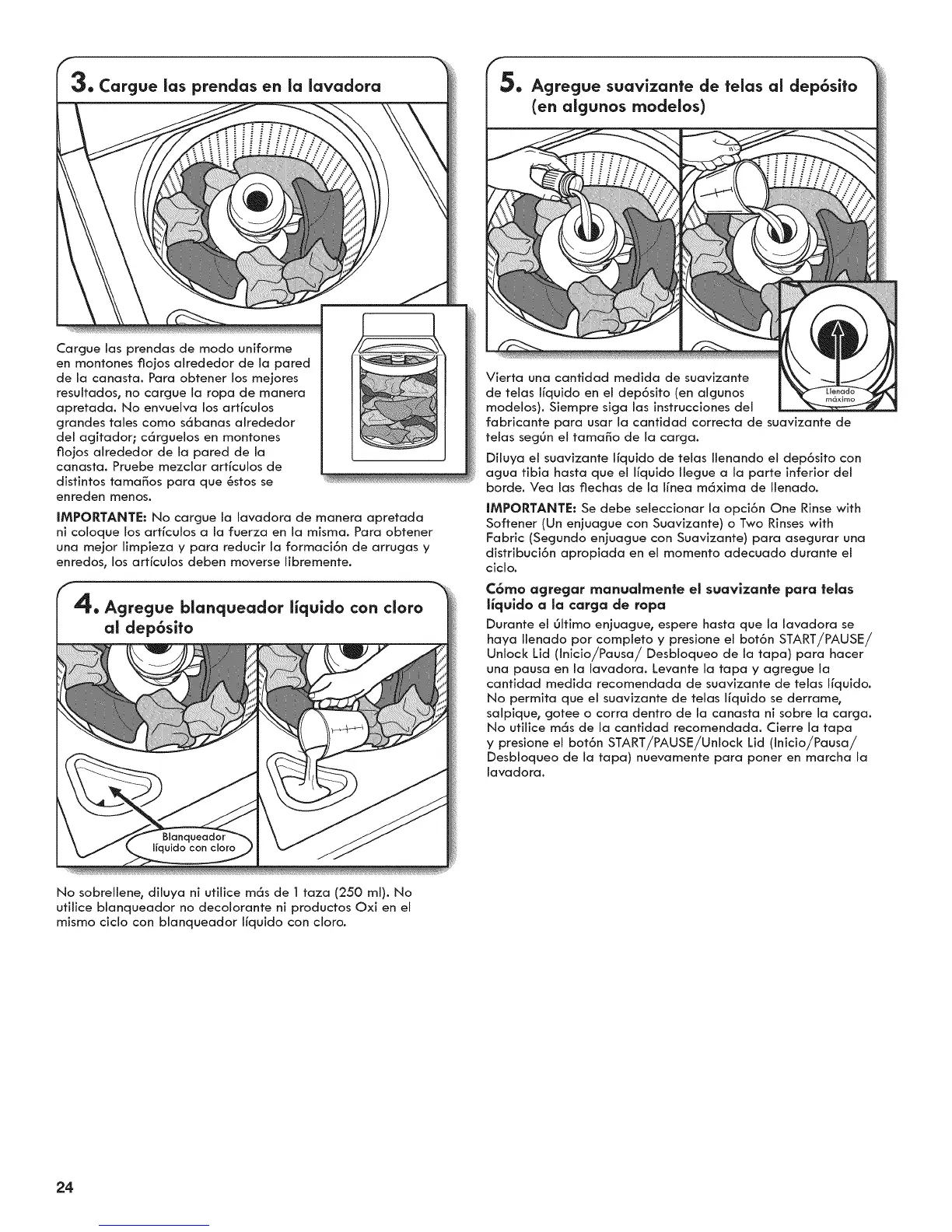 IMPORTANTE: No cargue la lavadora de manera apretada
