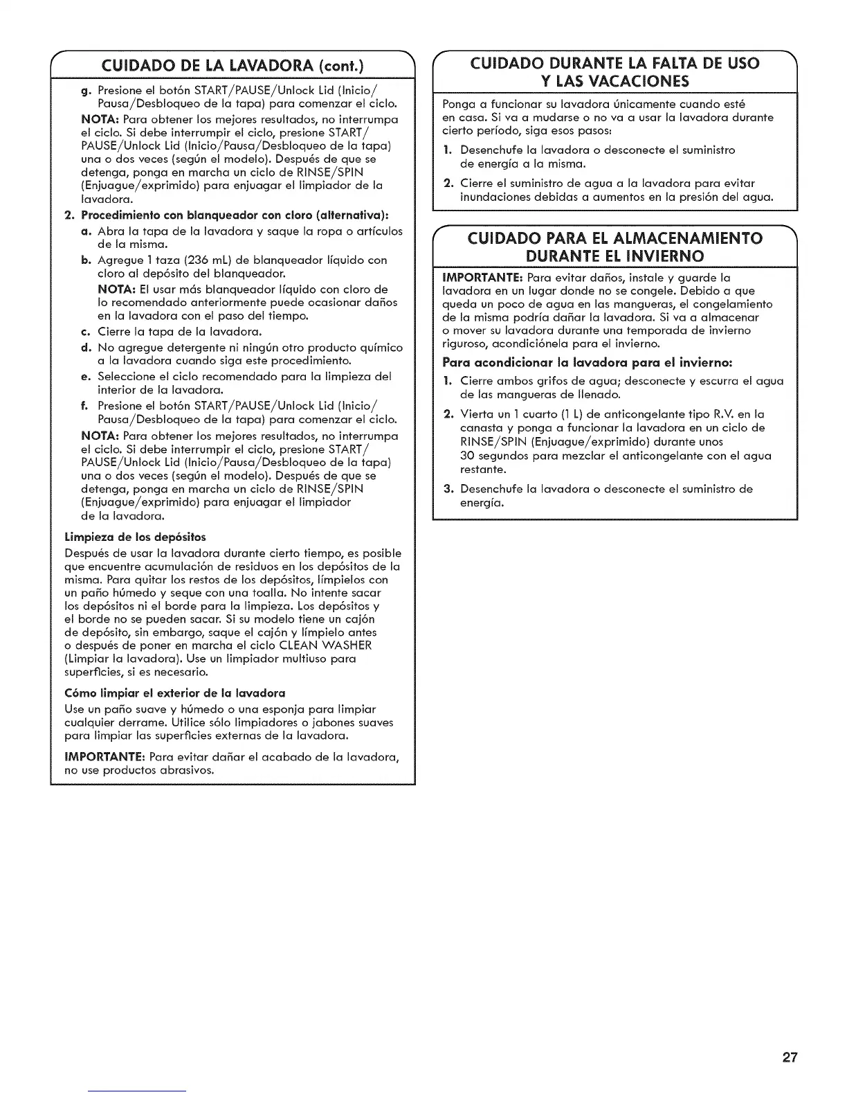 CUIDADO DE LA LAVADORA (cont.)