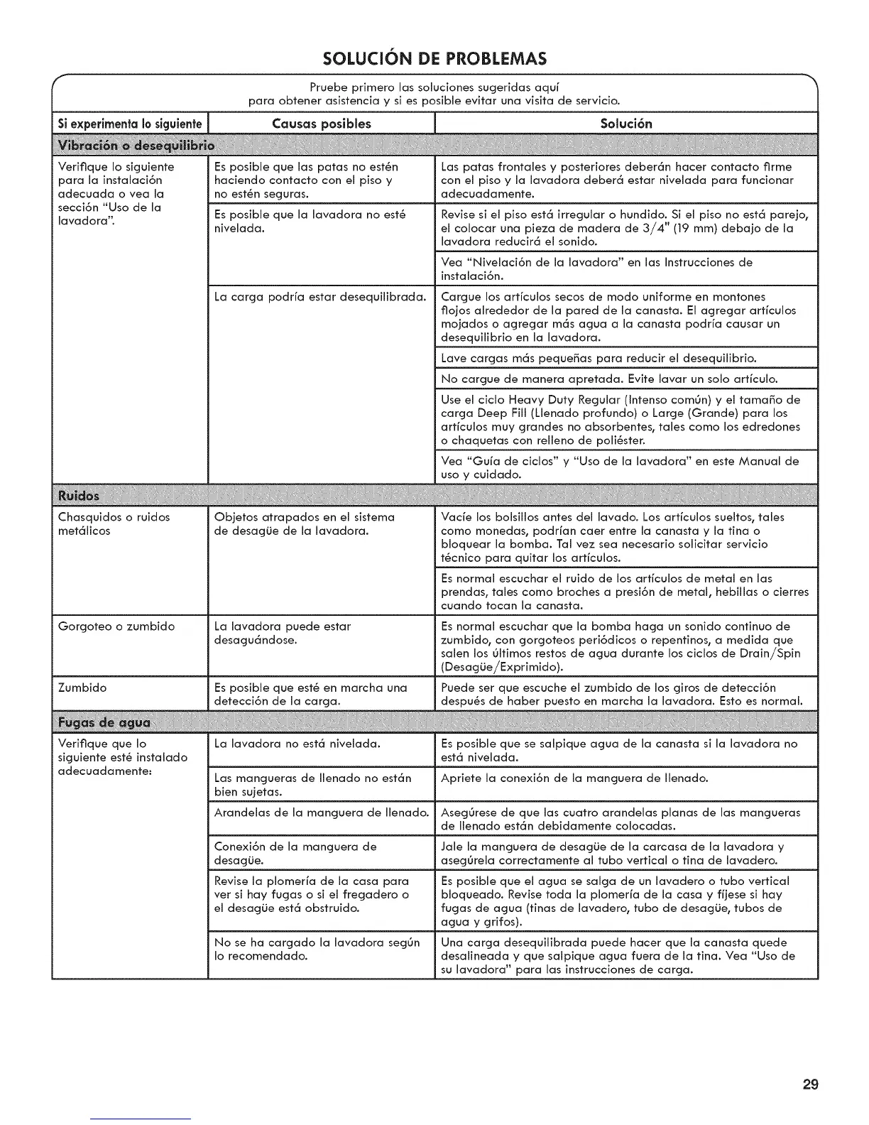 lavadora". Es posible que la lavadora no est_ Revise si el piso est6 irregular o hundido. Si el piso no est6 parejo,