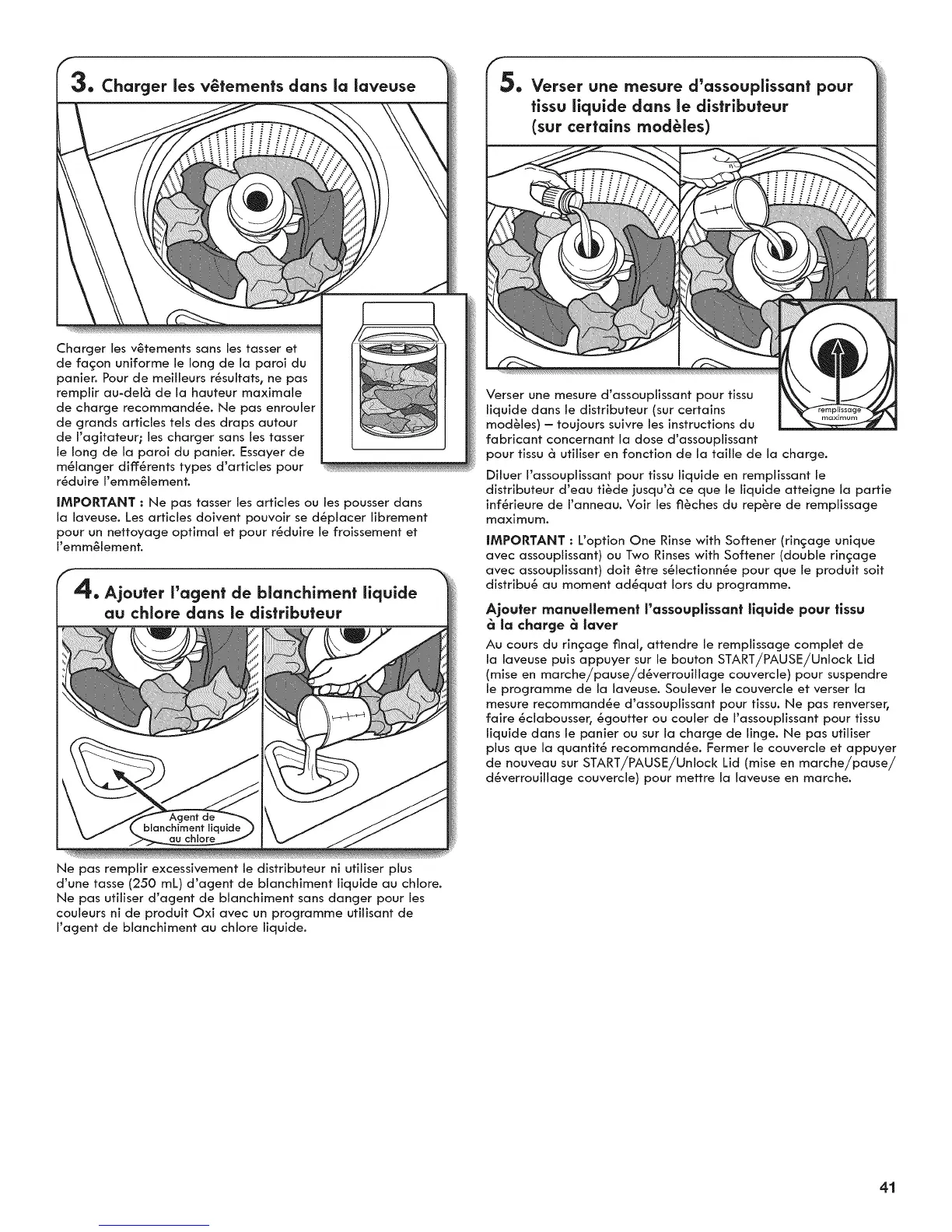 liquide dans le panier ou sur la charge de linge. Ne pas utJliser