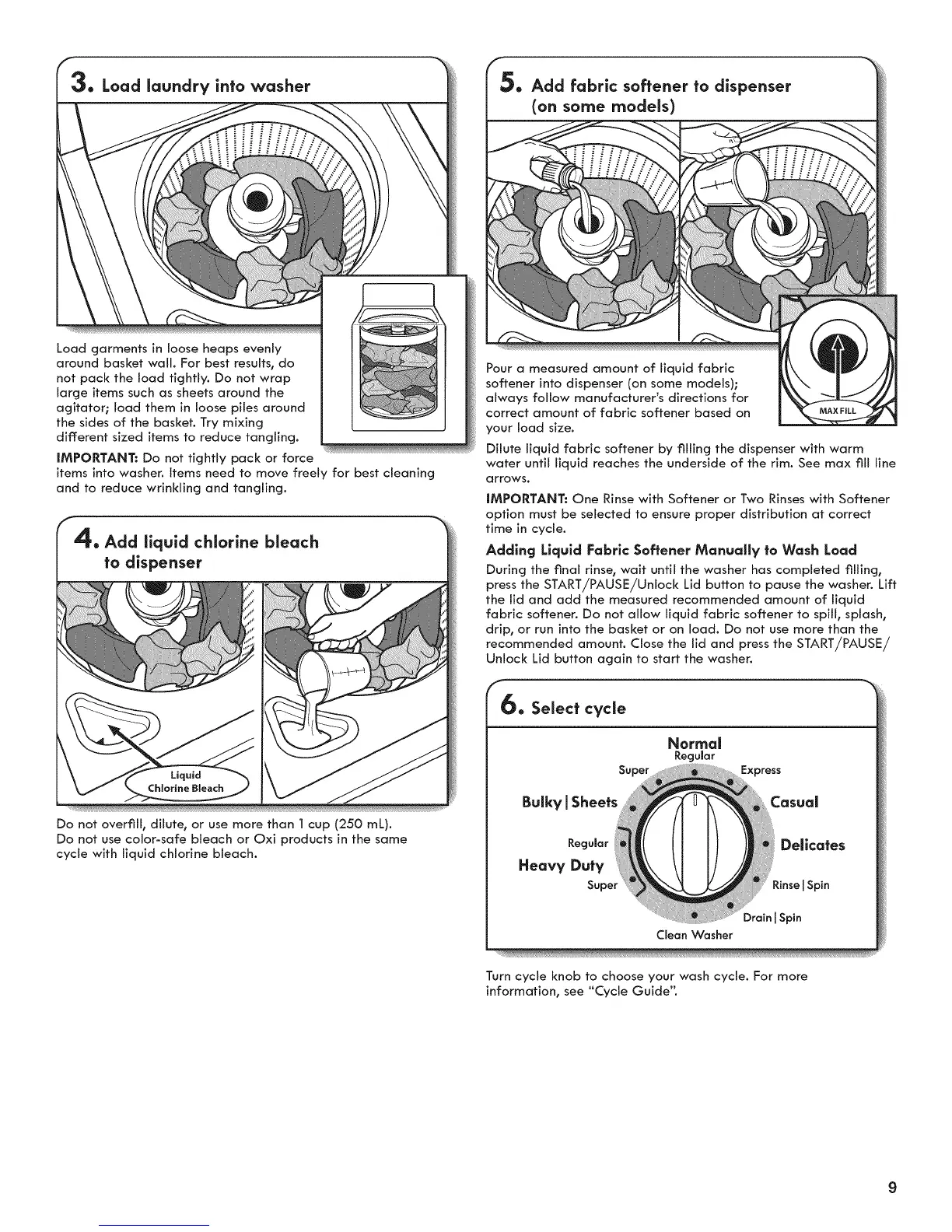 fabric softener. Do not allow liquid fabric softener to spill, splash,