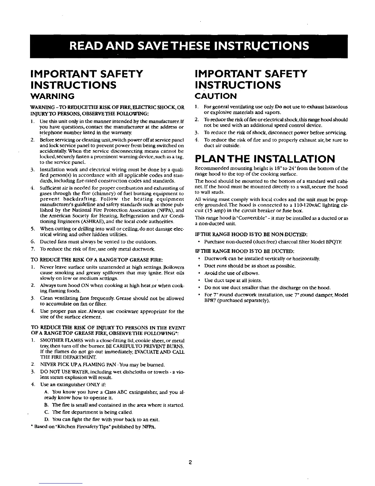 IFTHE RANGE HOOD ISTO BE NON-DUCTF, D: