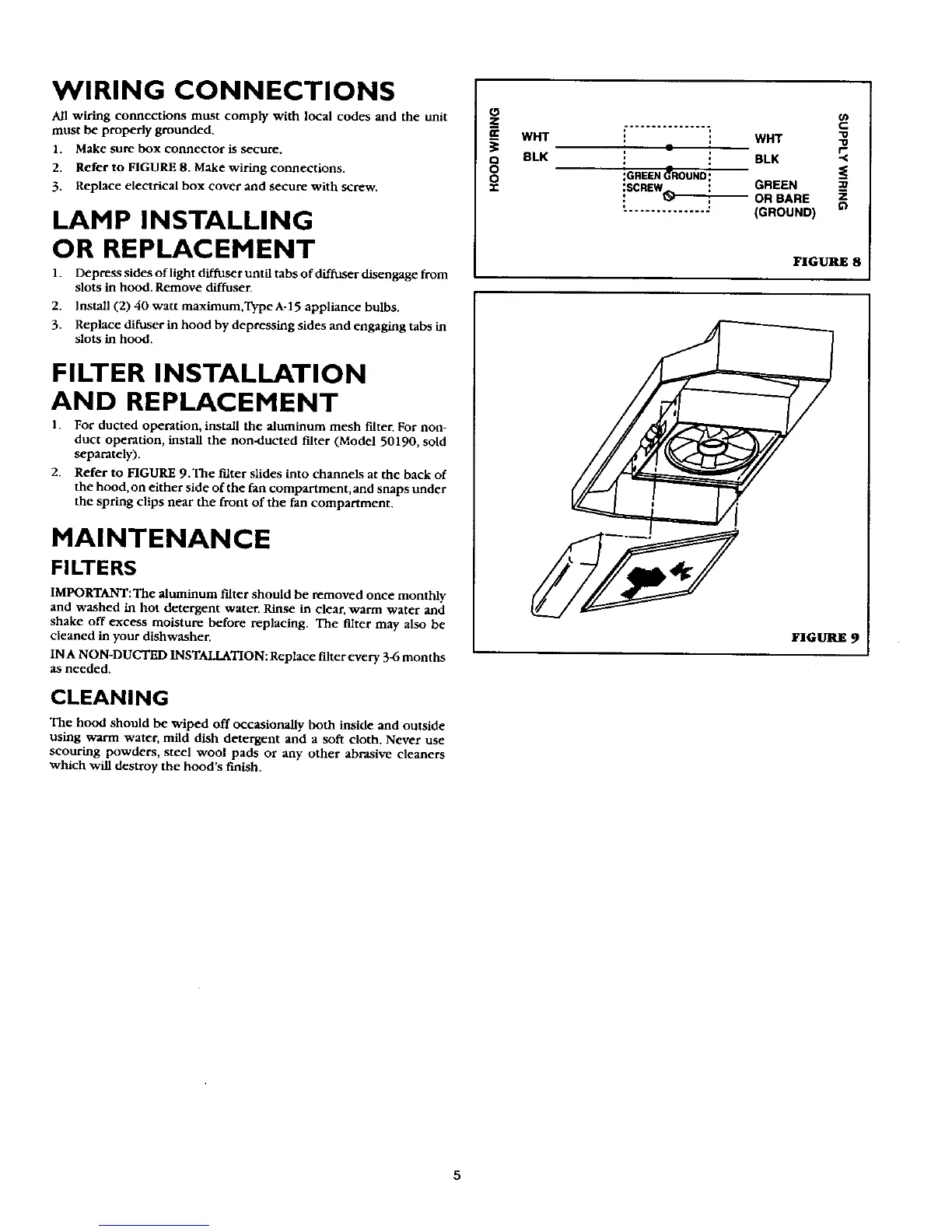 duct operation, install the non-ducted filter (Model 50190, sold