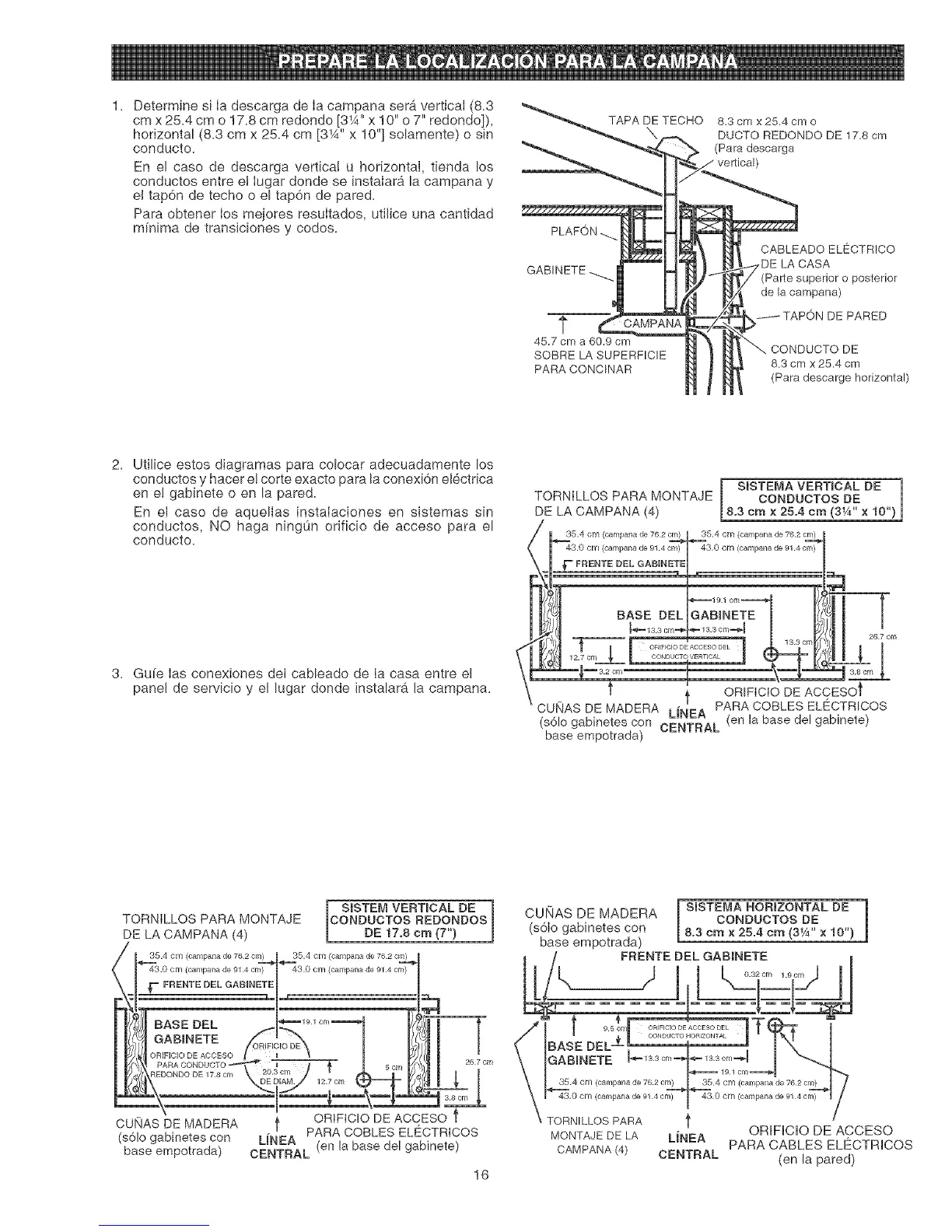 conductos y hacer e! corte exacto para la conexi6n el6ctrica