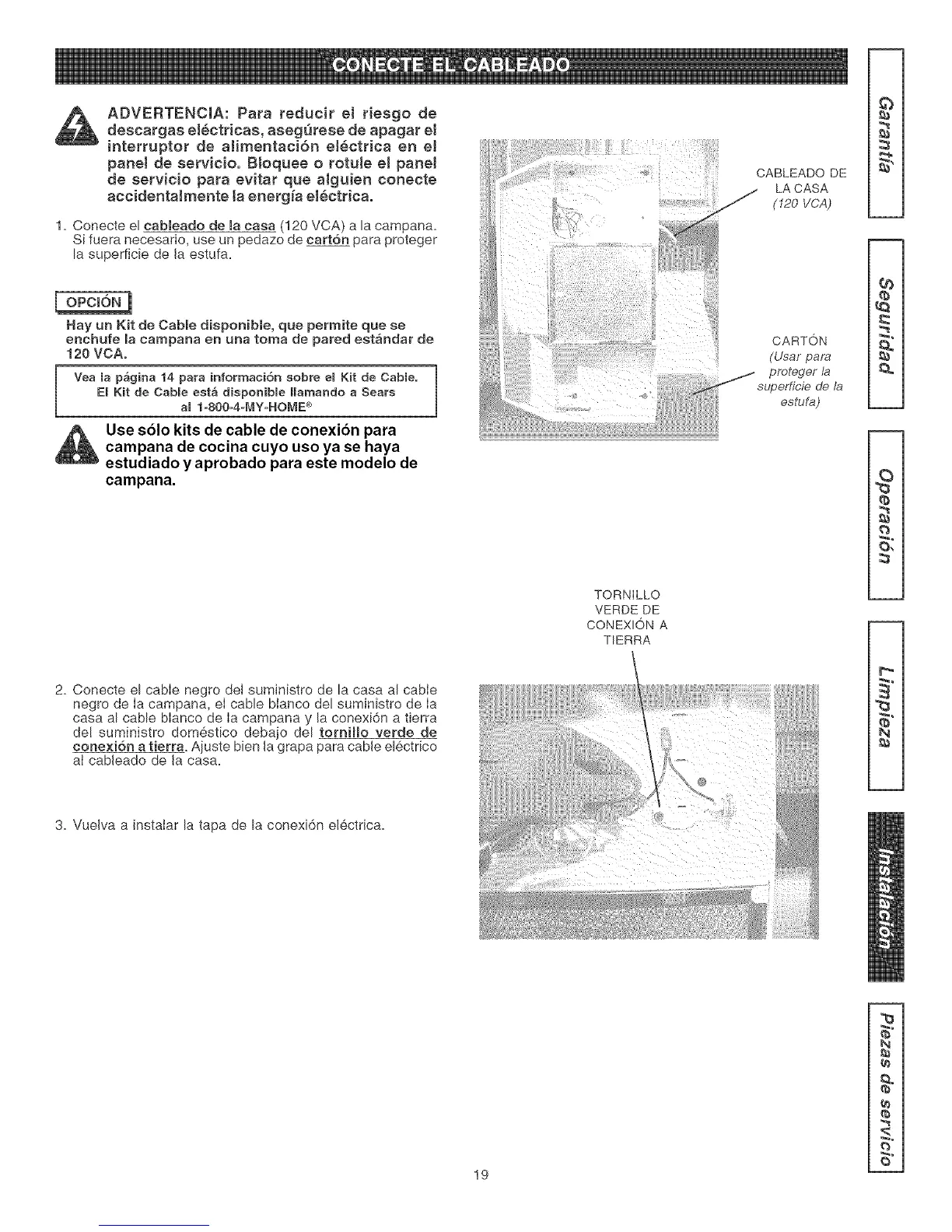 casa al cable blanco de Ia campana y la conexi6n a tierra