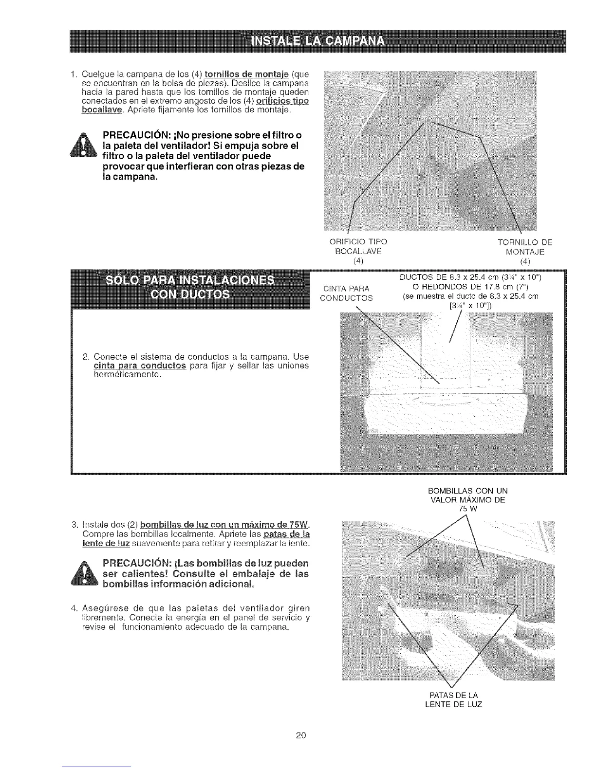 2. Conecte el sistema de conductos a Ia campana. Use