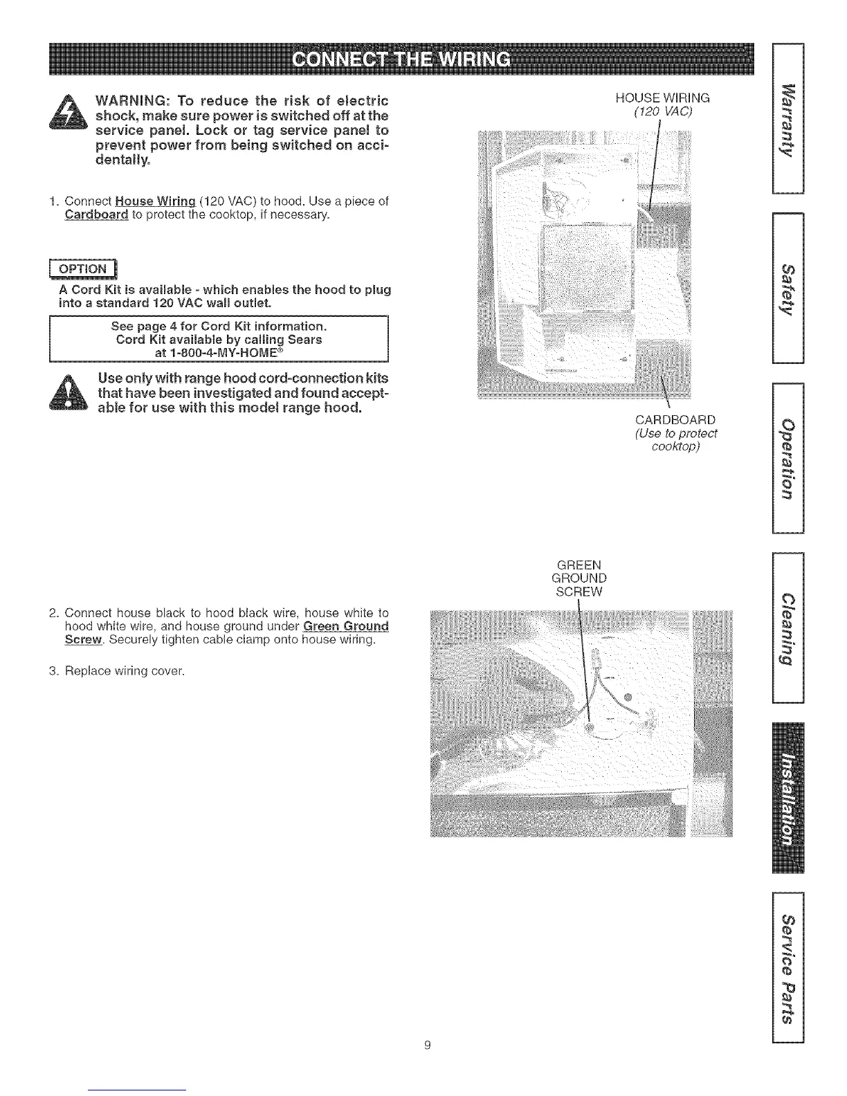 1= Connect House Wiring (120 VAC) to hood= Use a piece of