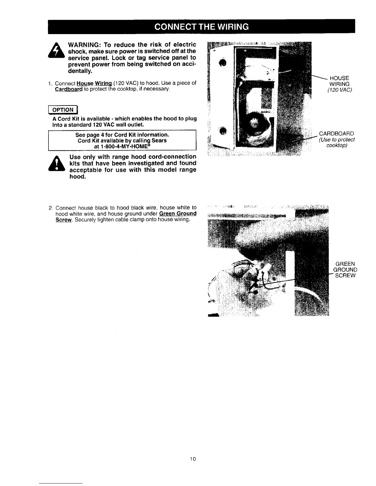 1. Connect _ (120 VAC) to hood. Use a piece of