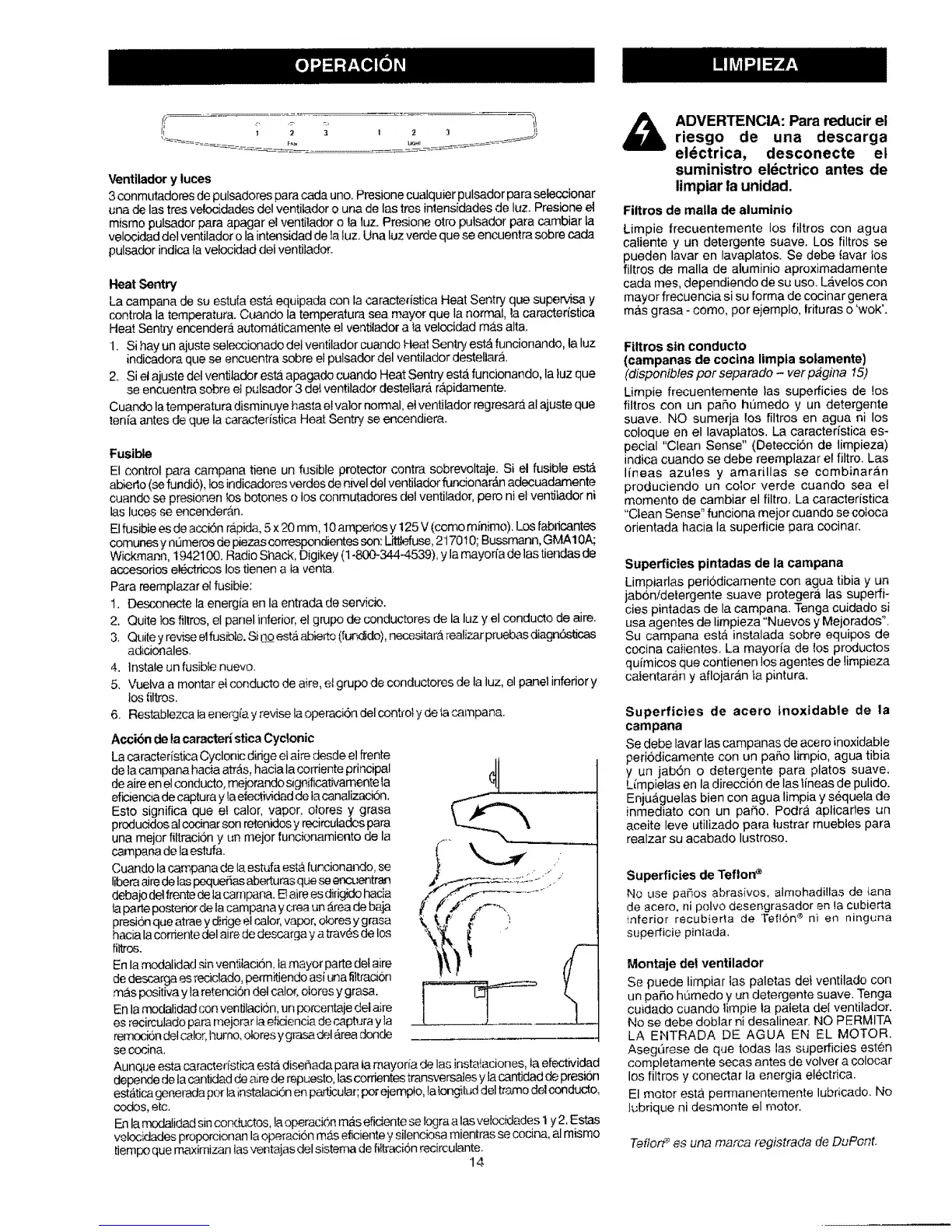 La campana de su estufa estA equipada con la caracteristica Heat Sentry que supervisa y